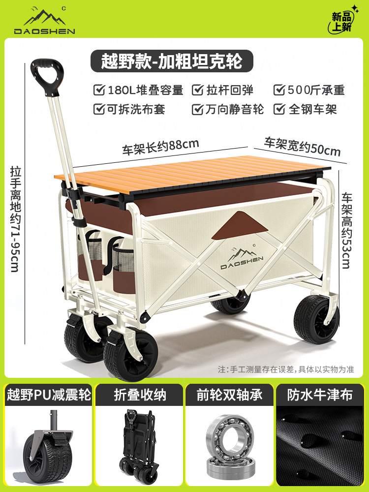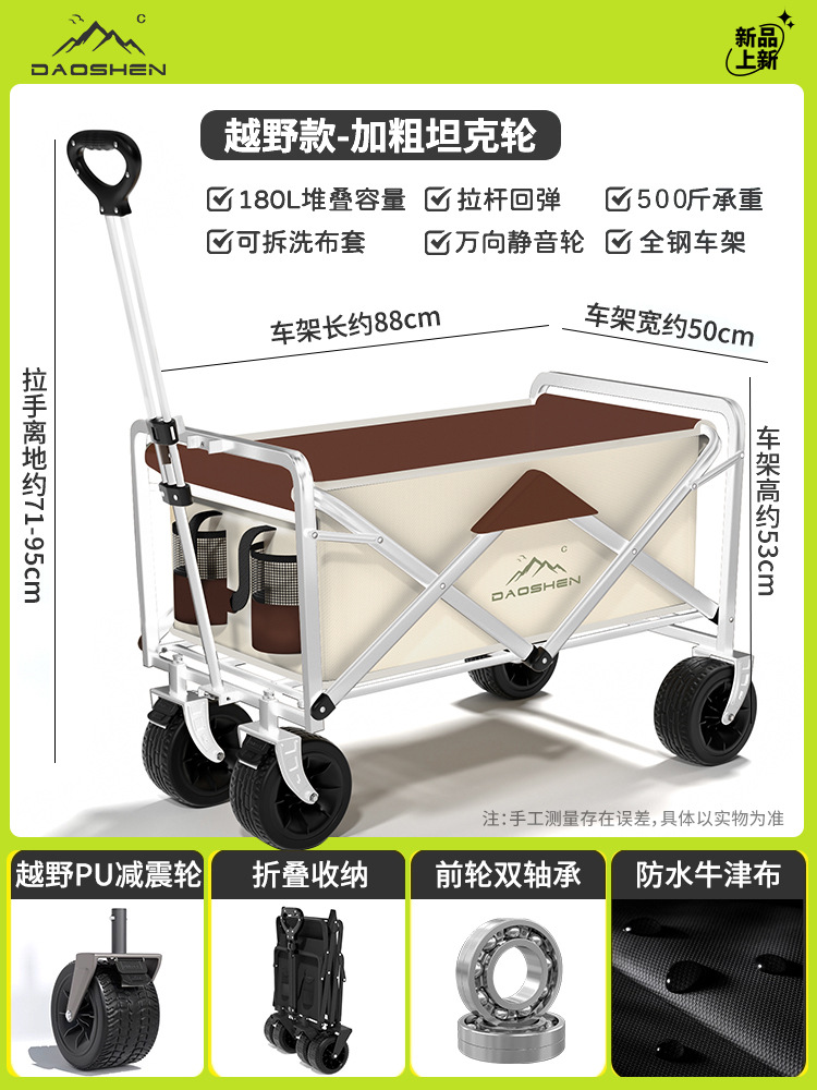 야외 캠핑카 스톨 대형 캠핑 접이식 대용량 트롤리 카트 피크닉 경량 여행 트레일러스토어 가기