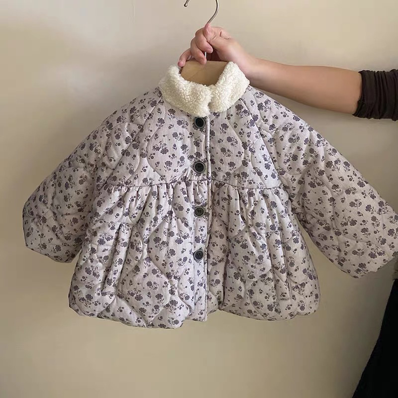 모리 아동복 소녀 꽃 면화 패딩 따뜻한면 패딩 재킷 코트 2024 가을과 겨울 아기 소녀면 패딩 기모 청바지스토어 가기