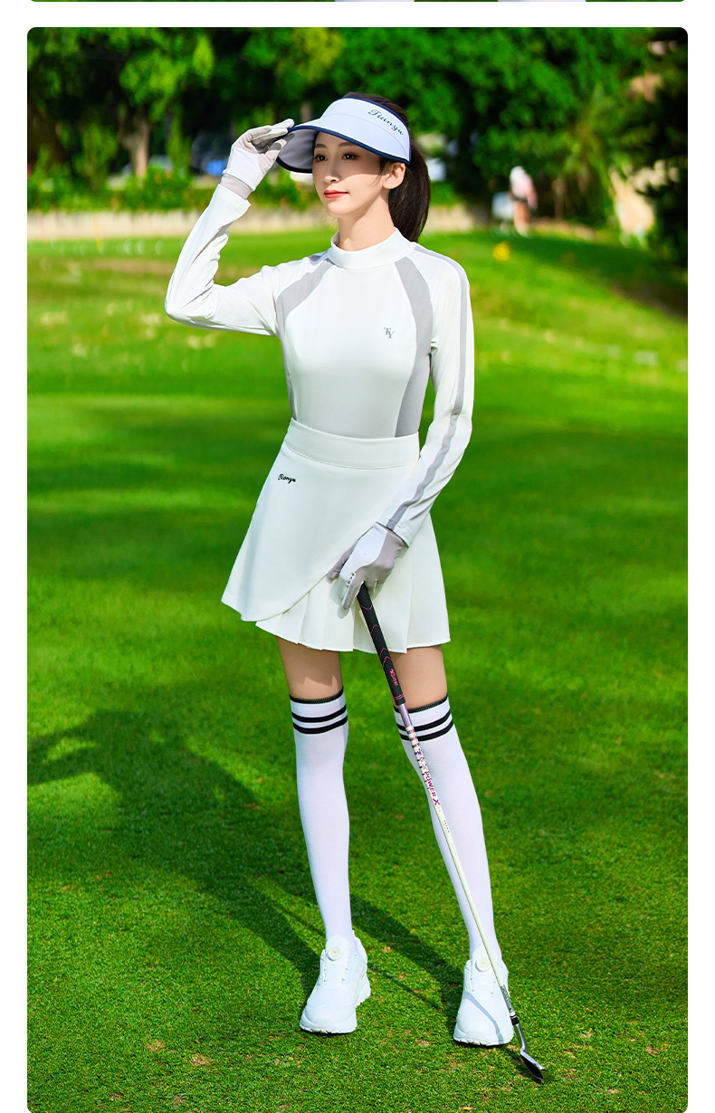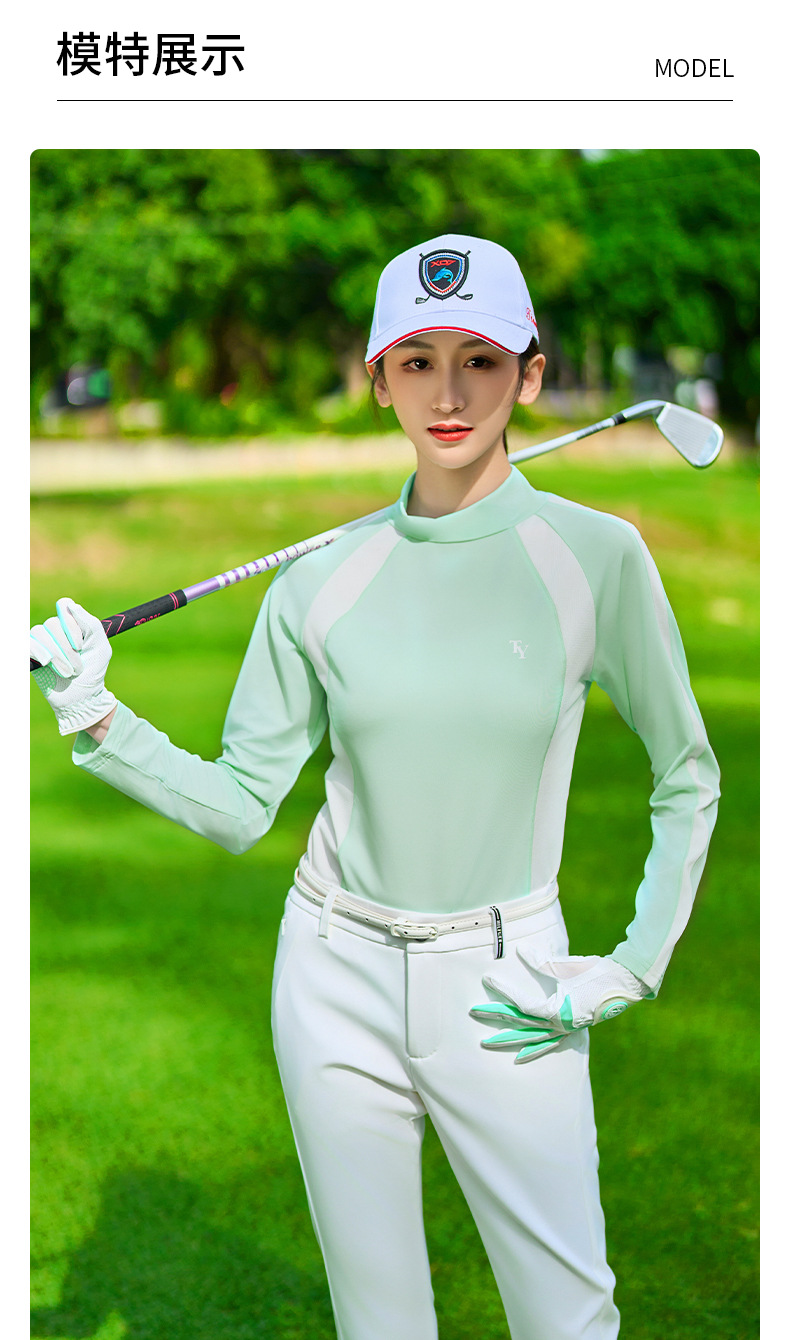TTYGJ 골프 여성용 긴팔 탑 라운드 넥 슬림 피트 통기성 봄, 여름 한국 스타일 저지 아이스 실크 슬리브 풀오버스토어 가기