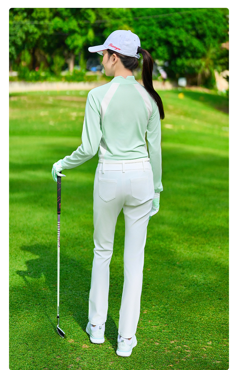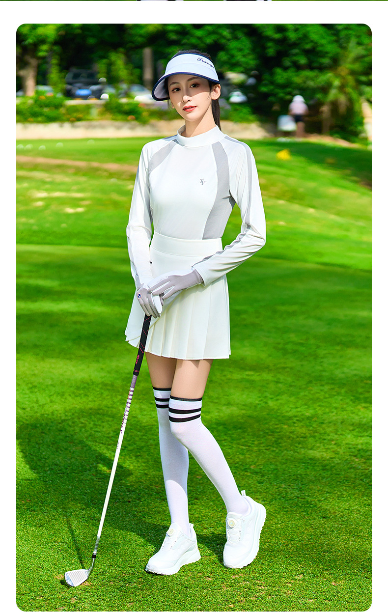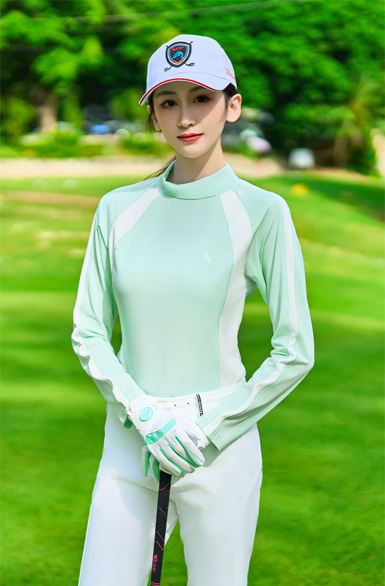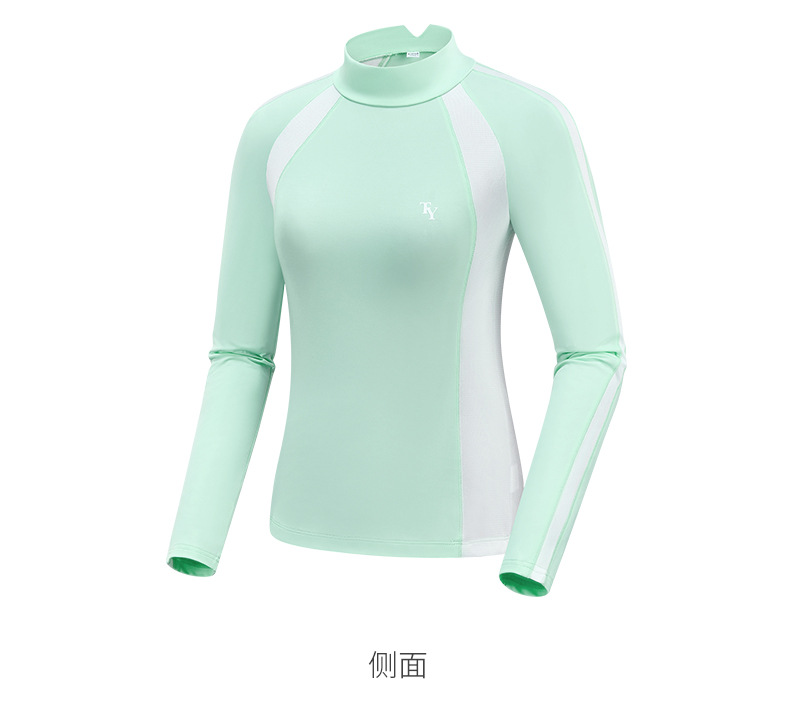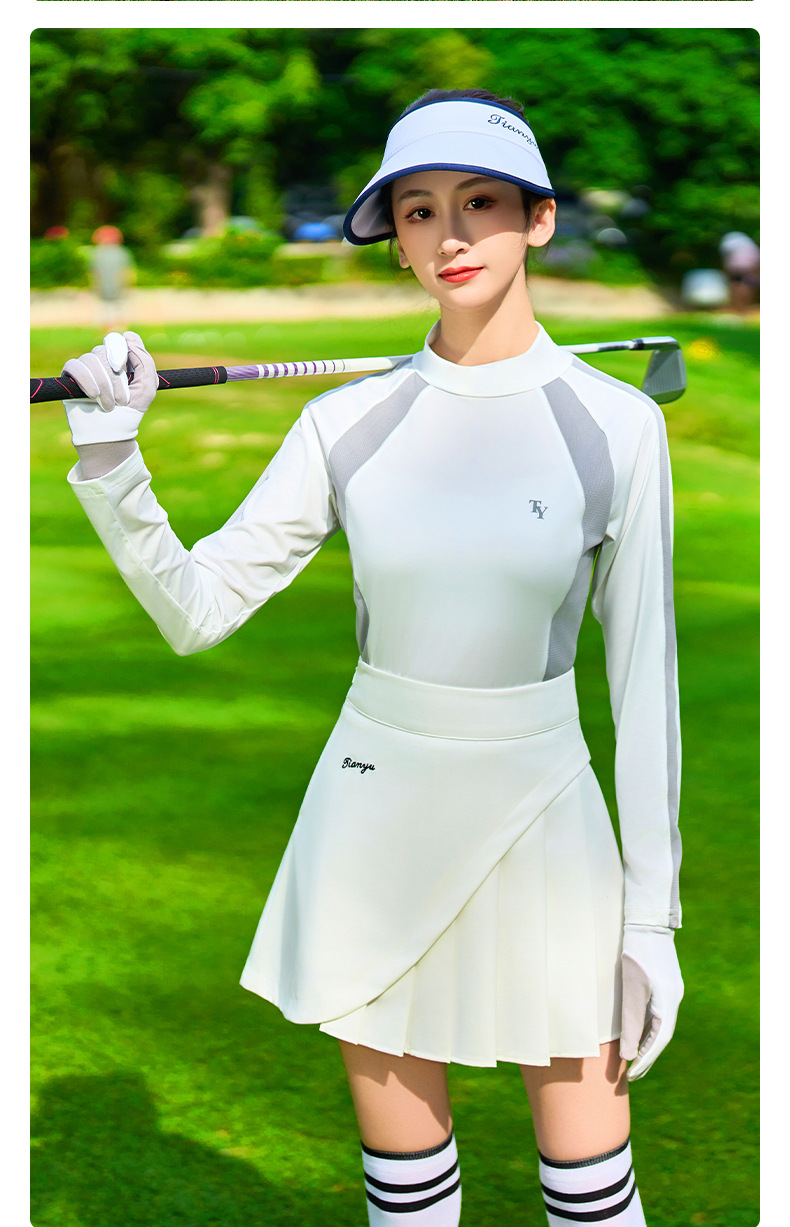 TTYGJ 골프 여성용 긴팔 탑 라운드 넥 슬림 피트 통기성 봄, 여름 한국 스타일 저지 아이스 실크 슬리브 풀오버
