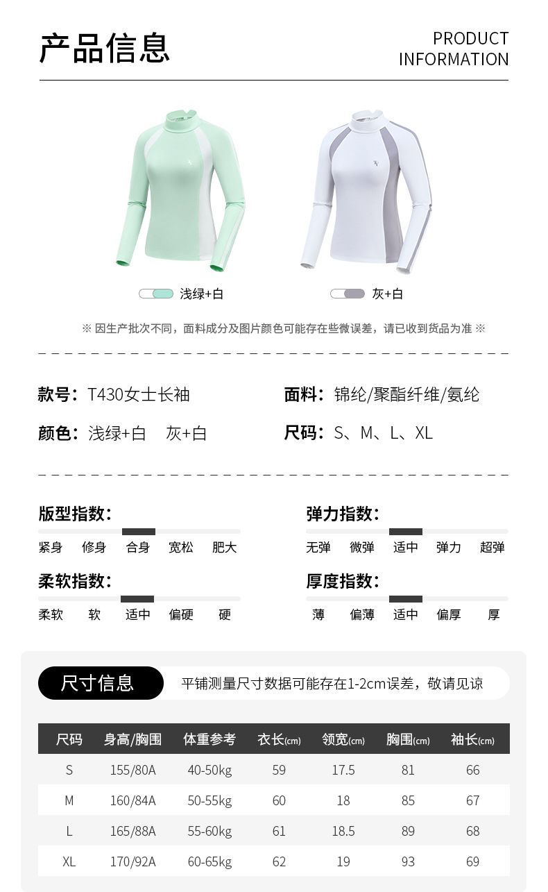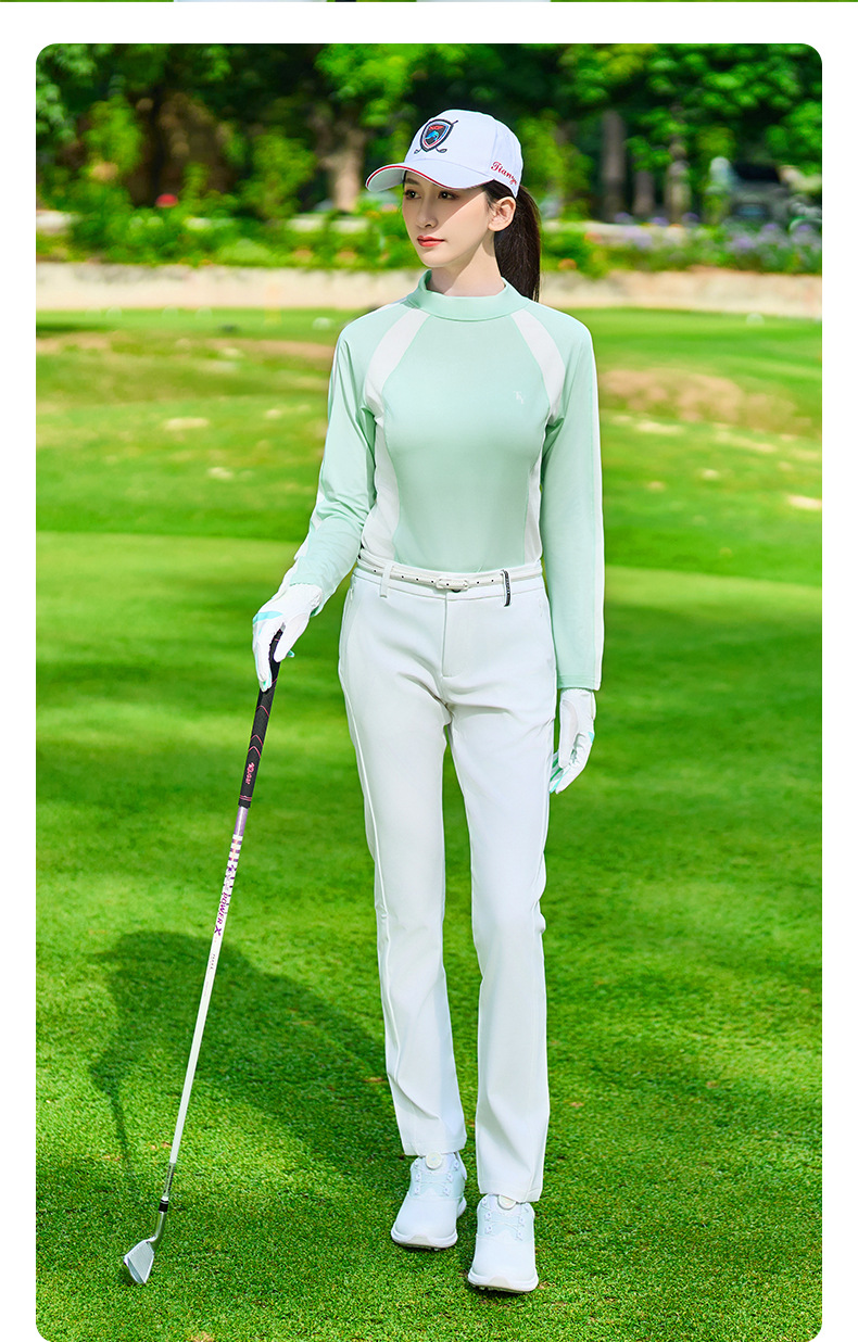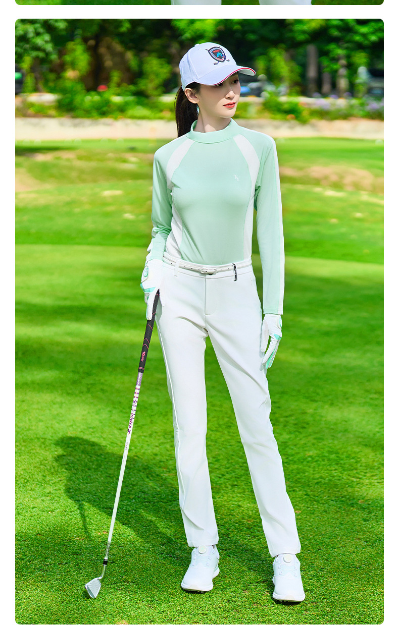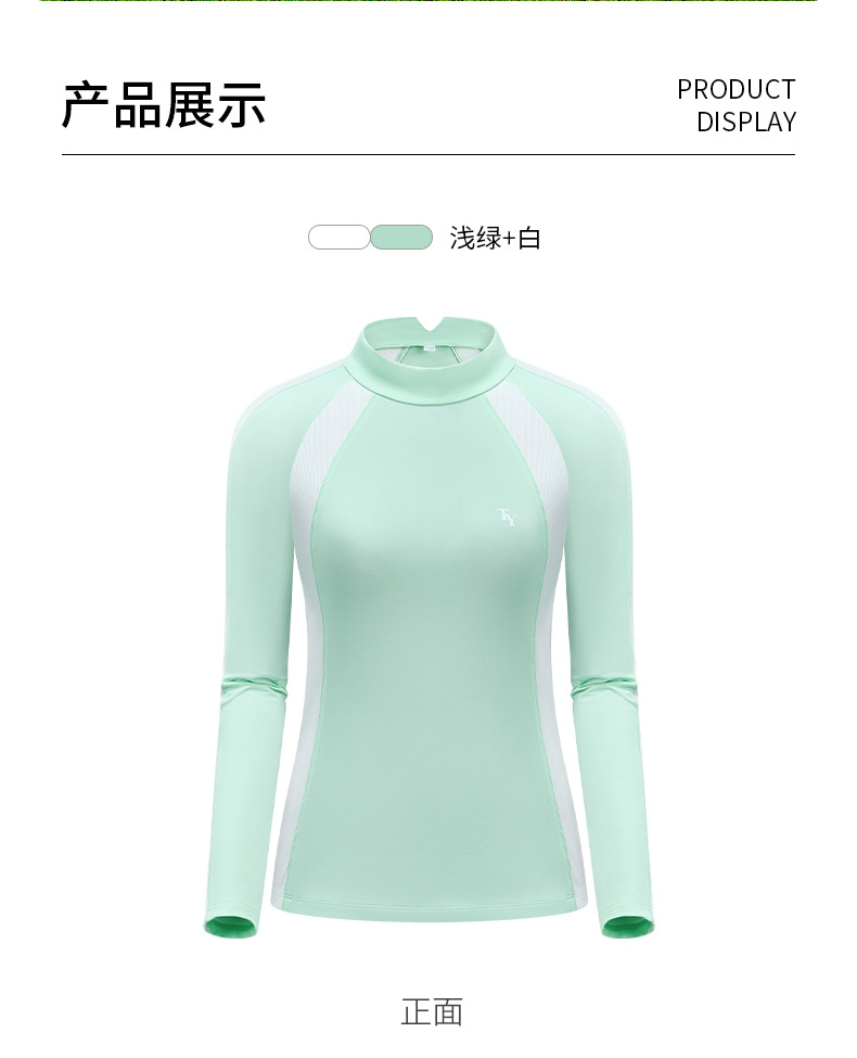 TTYGJ 골프 여성용 긴팔 탑 라운드 넥 슬림 피트 통기성 봄, 여름 한국 스타일 저지 아이스 실크 슬리브 풀오버