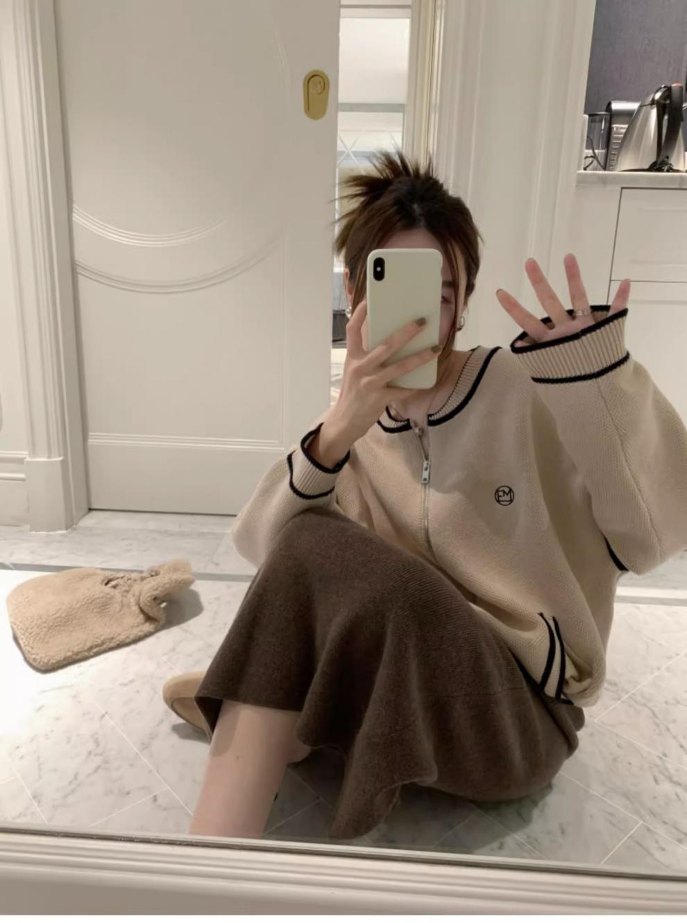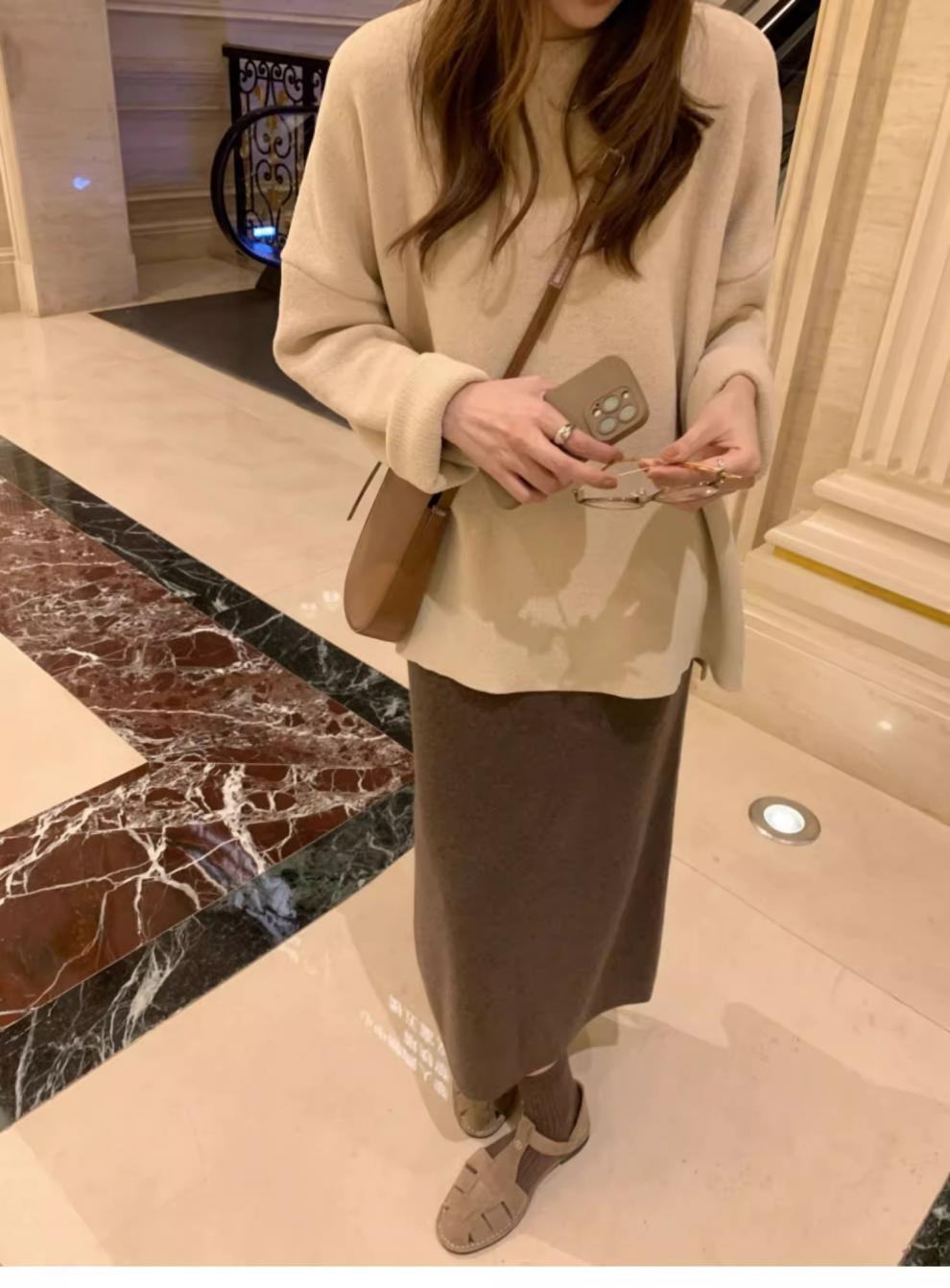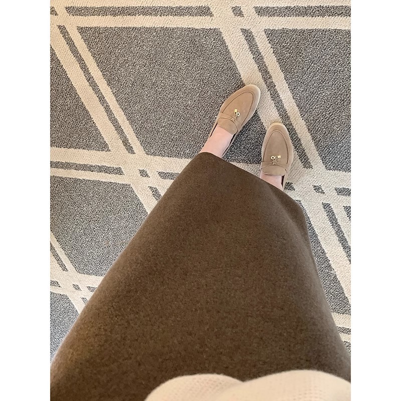 두꺼운 등 분할 니트 스커트 여성의 2024 년 가을과 겨울 새로운 높은 허리 캐주얼 슬리밍 스트레이트 백 팔 롱 스커트스토어 가기