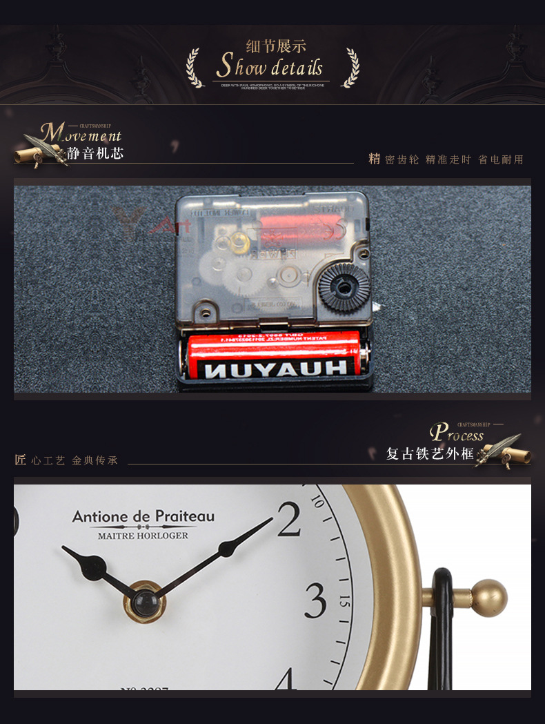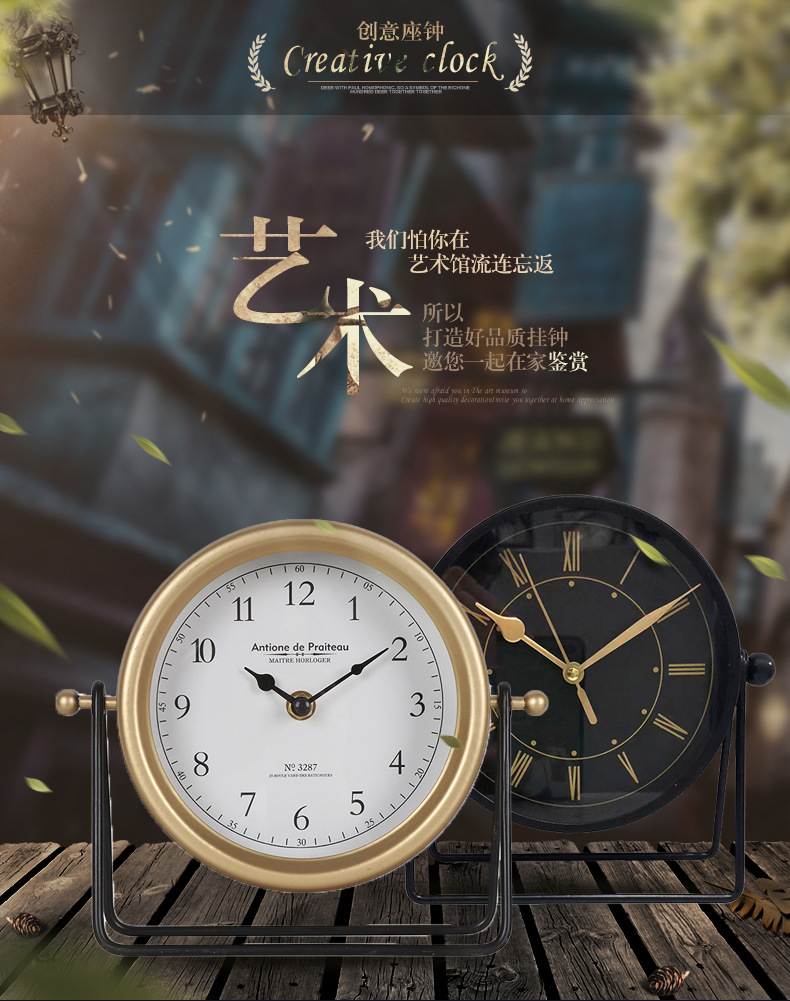 거실 철 시계 입구 장식품 침실 음소거 시계 침대 옆 시계 창조적 인 작은 시계 책상 시계 학습 테이블 세트스토어 가기