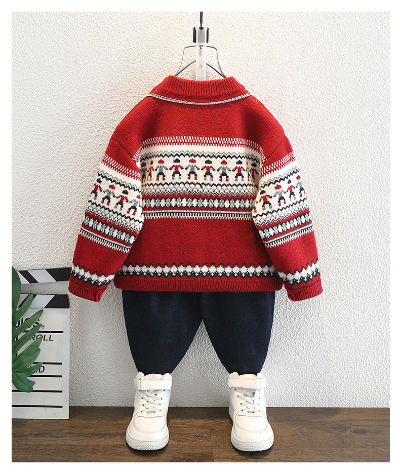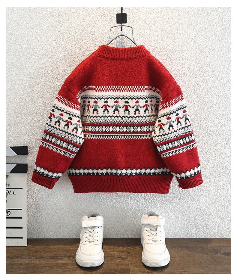 남아용 겨울 두꺼운 스웨터 2025 신년 모델 아동 니트 스웨터 남아용 빨간색 따뜻한 상의 트렌디한 아동복스토어 가기