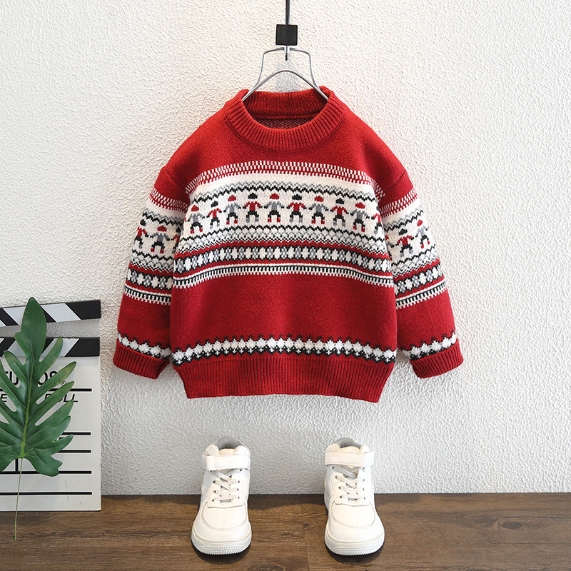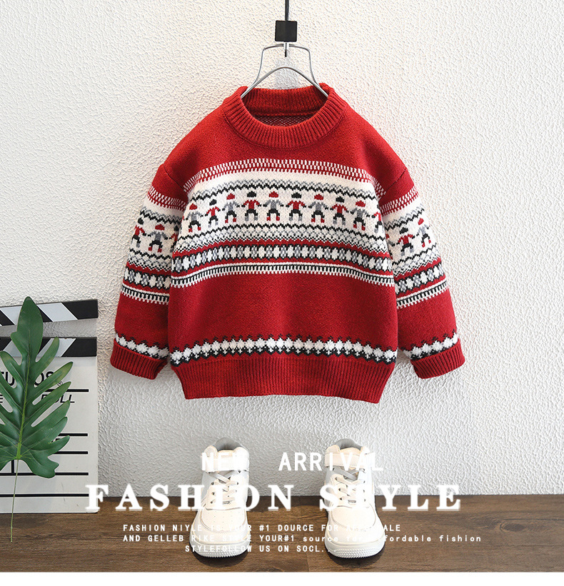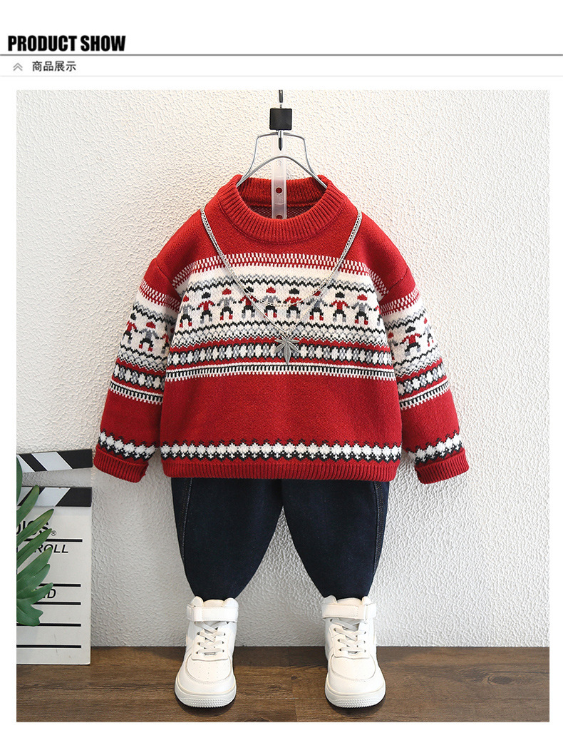 남아용 겨울 두꺼운 스웨터 2025 신년 모델 아동 니트 스웨터 남아용 빨간색 따뜻한 상의 트렌디한 아동복