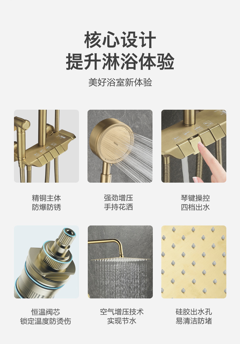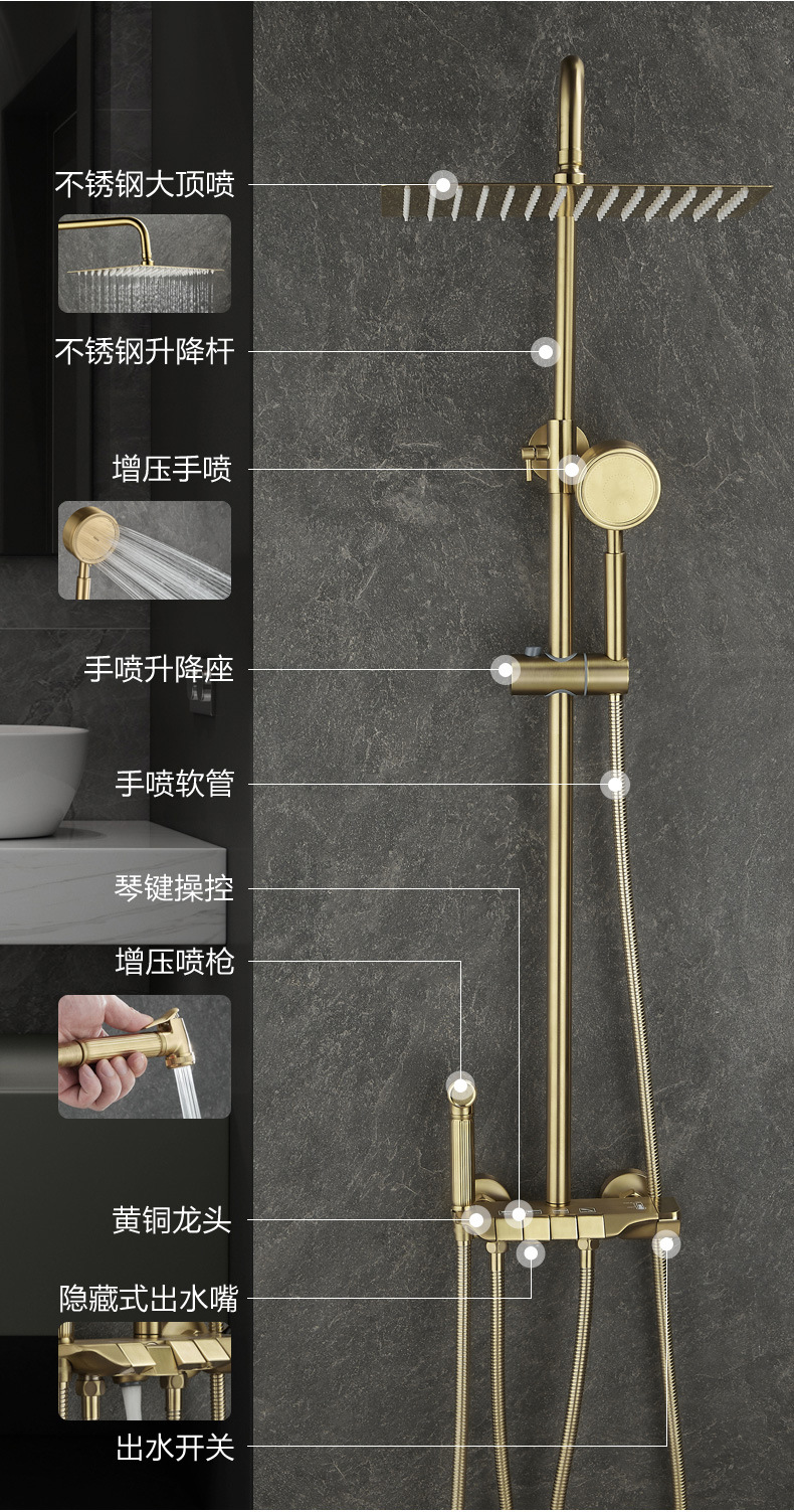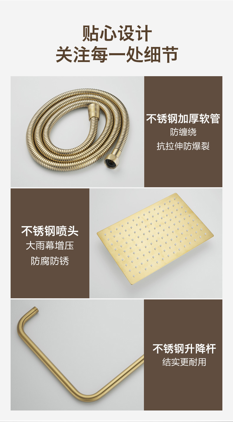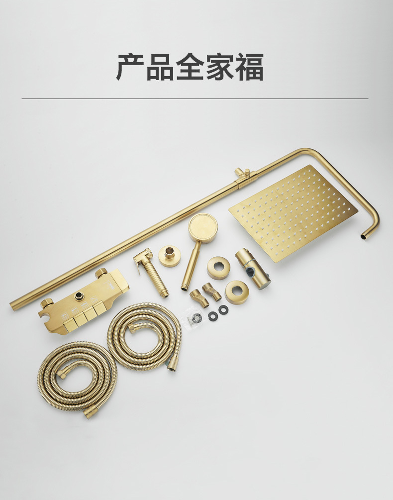솔질 골드 컬러 샤워 세트 가구 모든 구리 바디 욕실 샤워 일정한 온도 수도꼭지 샤워 세트