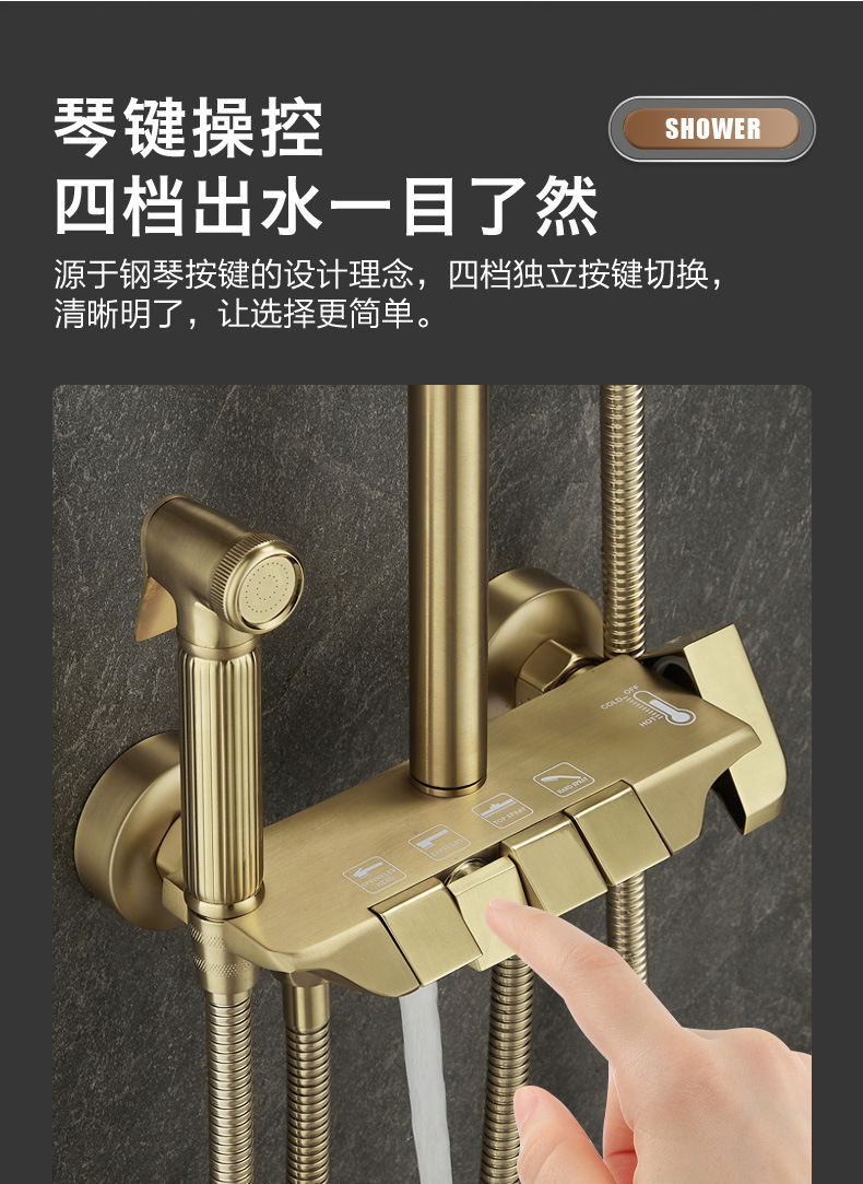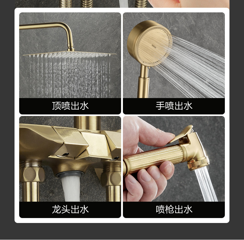 • 브러시드 골드 라이트 럭셔리 - 뜨겁고 차가운 4단 샤워 스테인레스 스틸 노즐