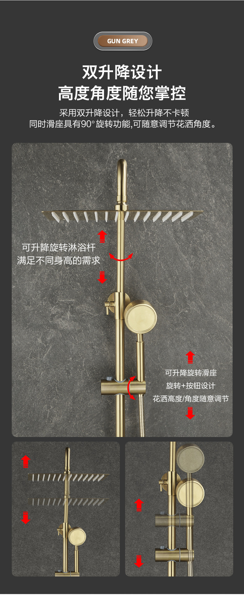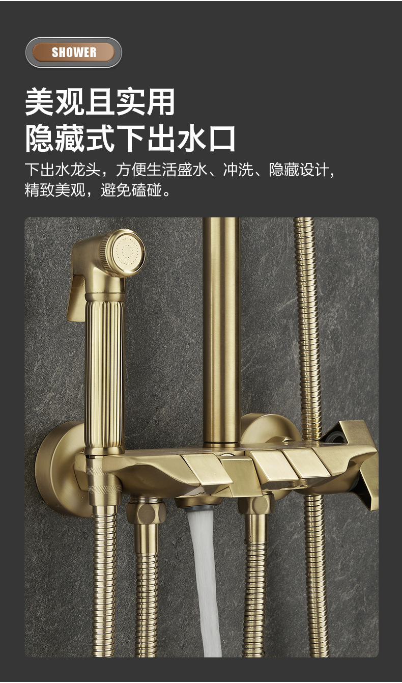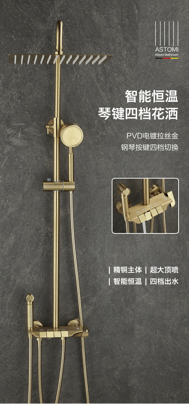 • 브러시드 골드 라이트 럭셔리 항온 4단 샤워 스테인레스 스틸 노즐