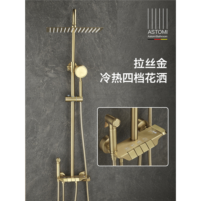 솔질 골드 컬러 샤워 세트 가구 모든 구리 바디 욕실 샤워 일정한 온도 수도꼭지 샤워 세트스토어 가기