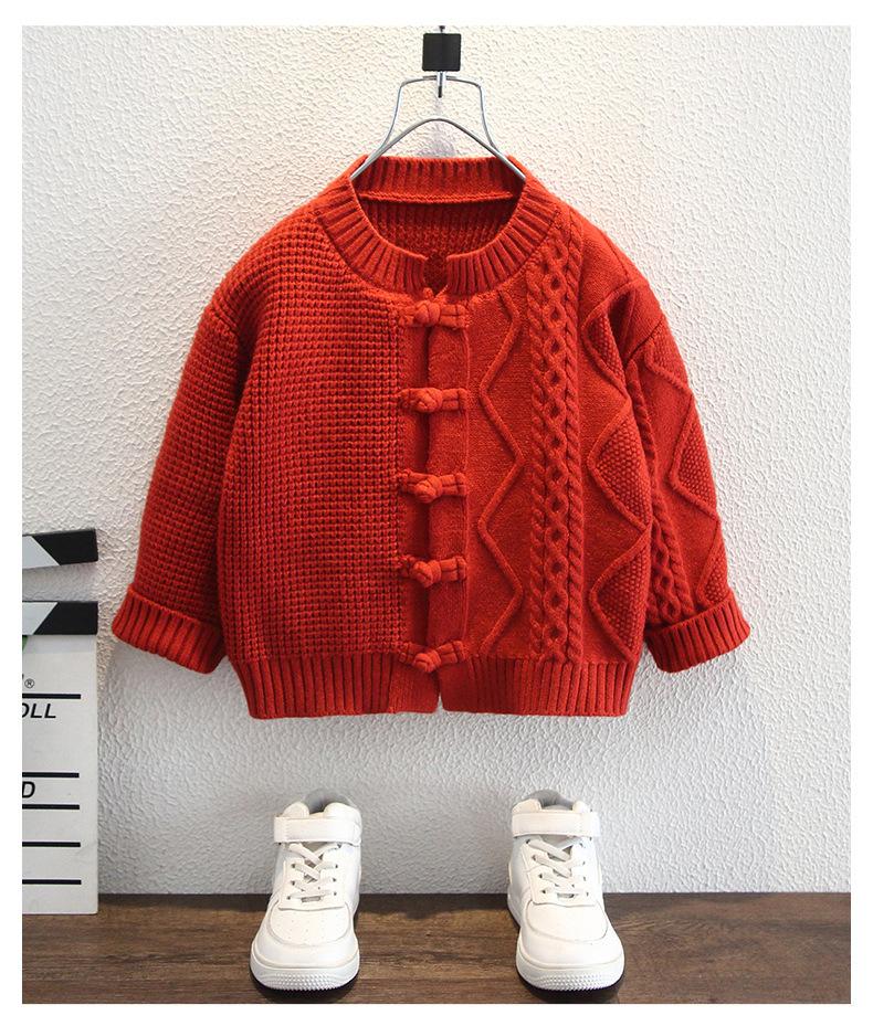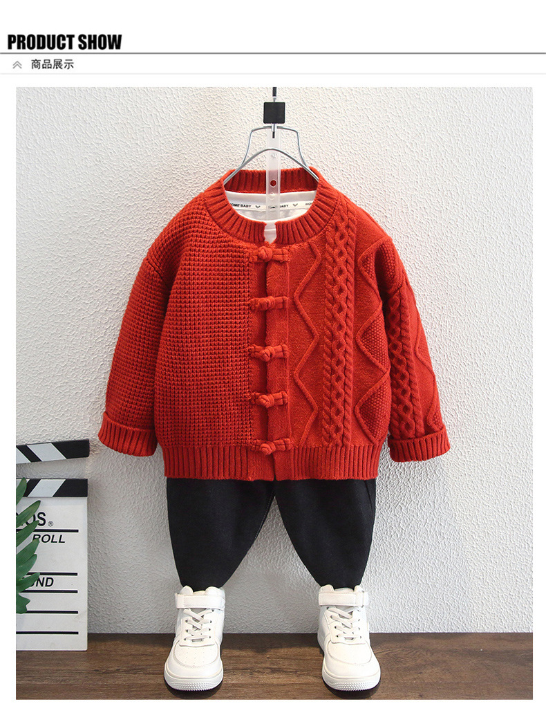 소년 스웨터 겨울 2024 새로운 두꺼운 붉은 축제 아동복 새해 카디건 옷 아기 겨울 의류스토어 가기