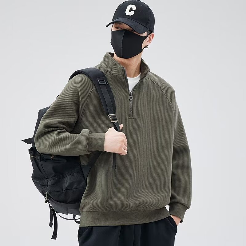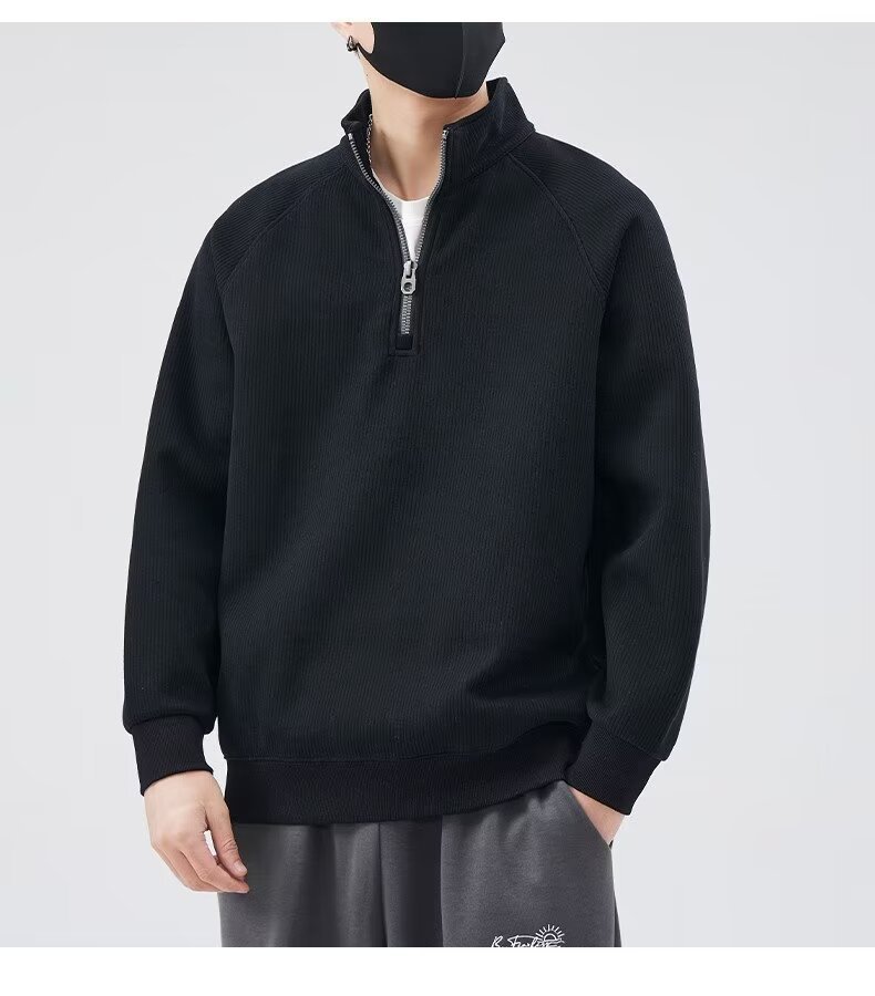 하프 지퍼 두꺼운 수직 칼라 솔리드 컬러 땀 남자 가을과 겨울 간단한 올 매치 느슨한 기모 내부 재킷