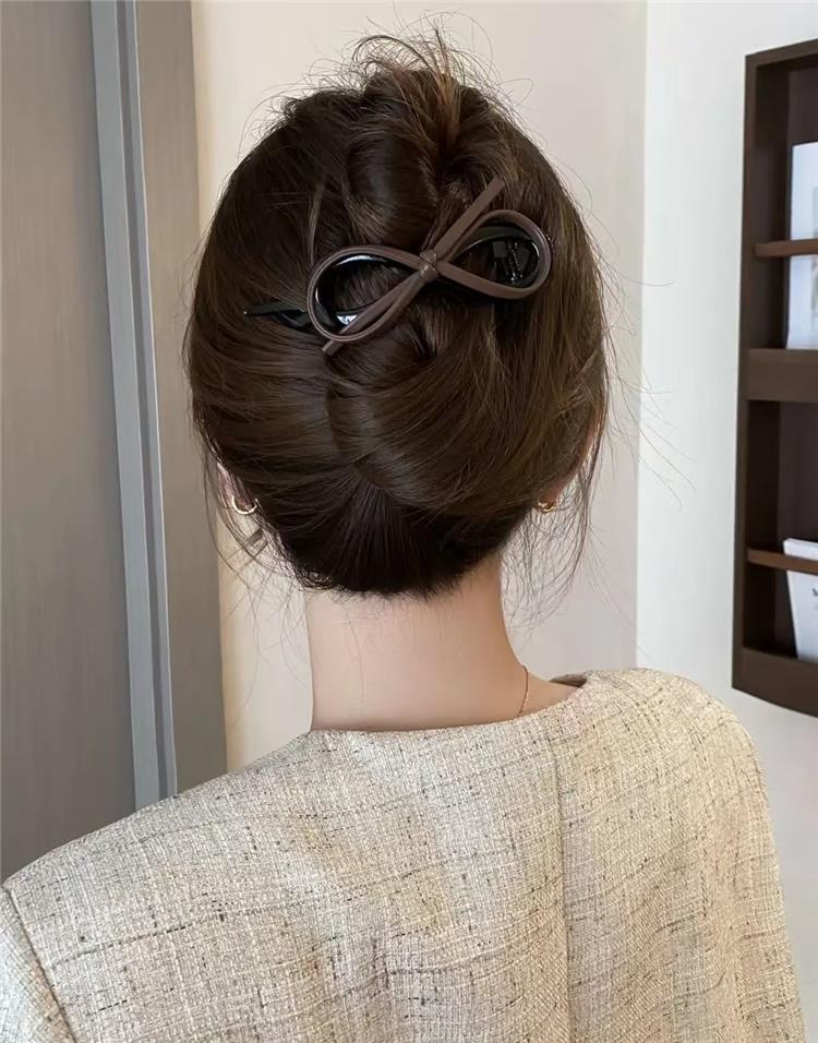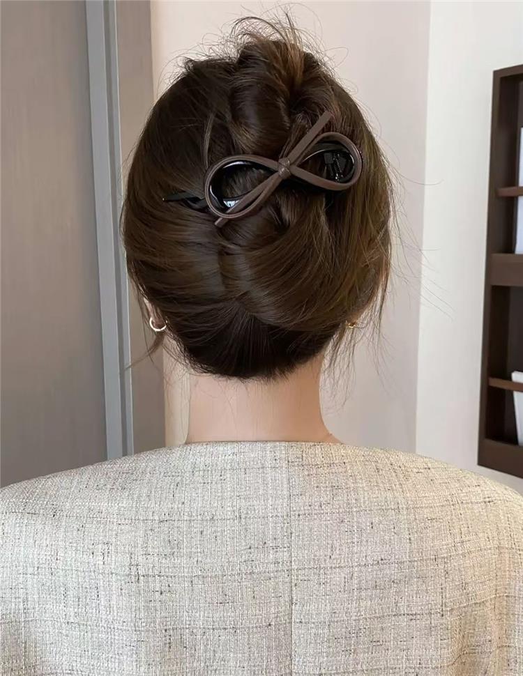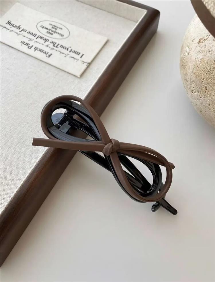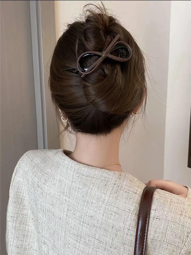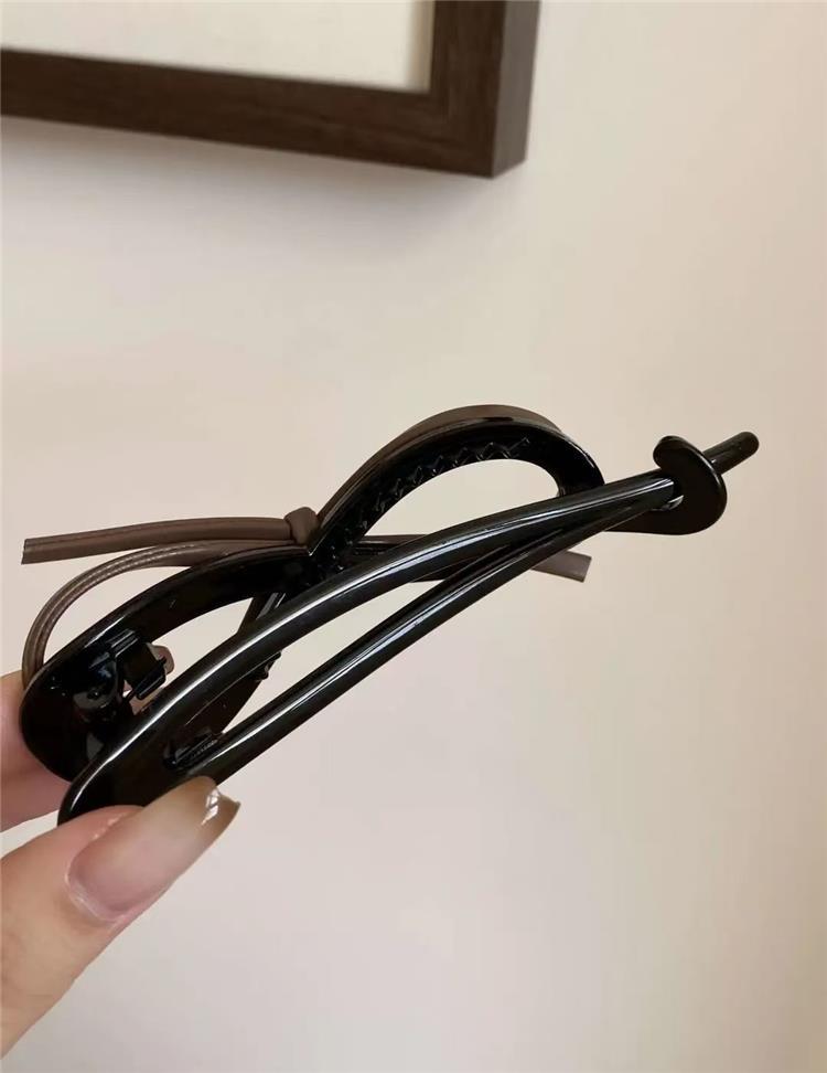 기질 가죽 활 트위스트 클립 여성의 머리 머리 뒷면 고급 한 문자 클립 헤드웨어 2024 새로운