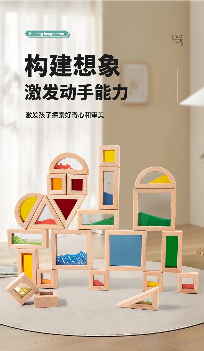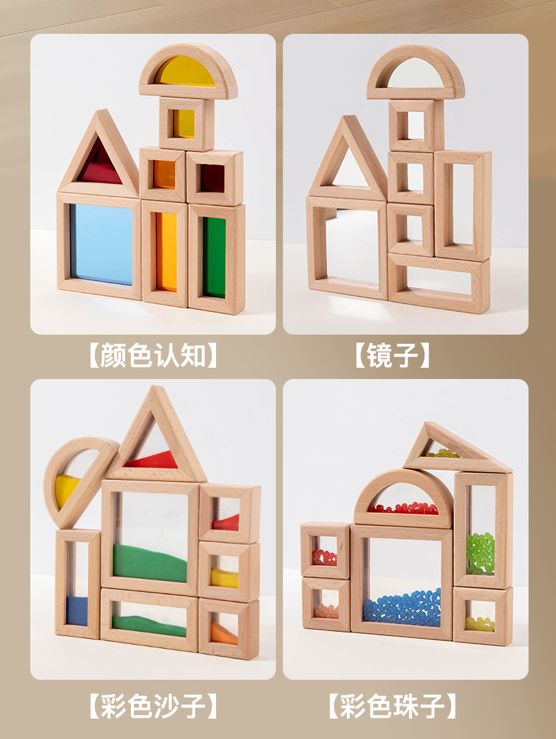 새로운 나무 무지개 아크릴 감각 건물 블록 창조적 인 건물 교육 계몽주의 조기 교육 교육 어린이 장난감 지원