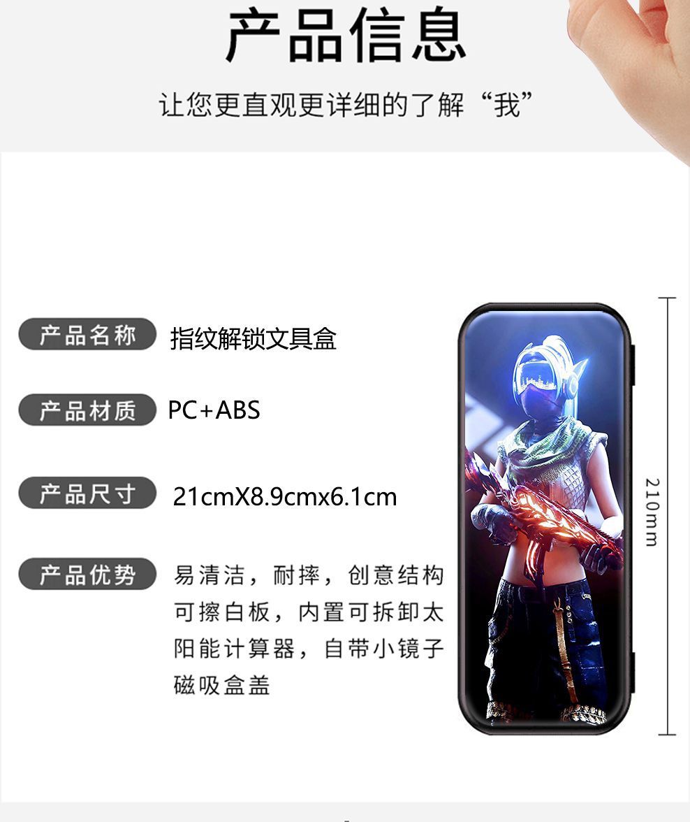 치킨 평화 엘리트 지문 잠금 해제 문구 상자 고등학교 초등학교 소년 잘 생긴 연필 상자 대용량 소녀