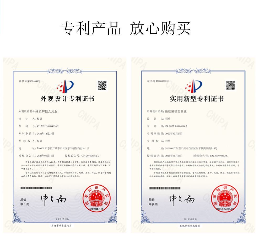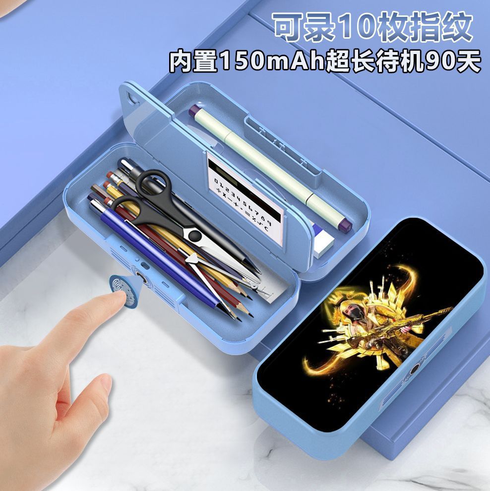• 지문 잠금 해제 단색 무패턴 펜 상자