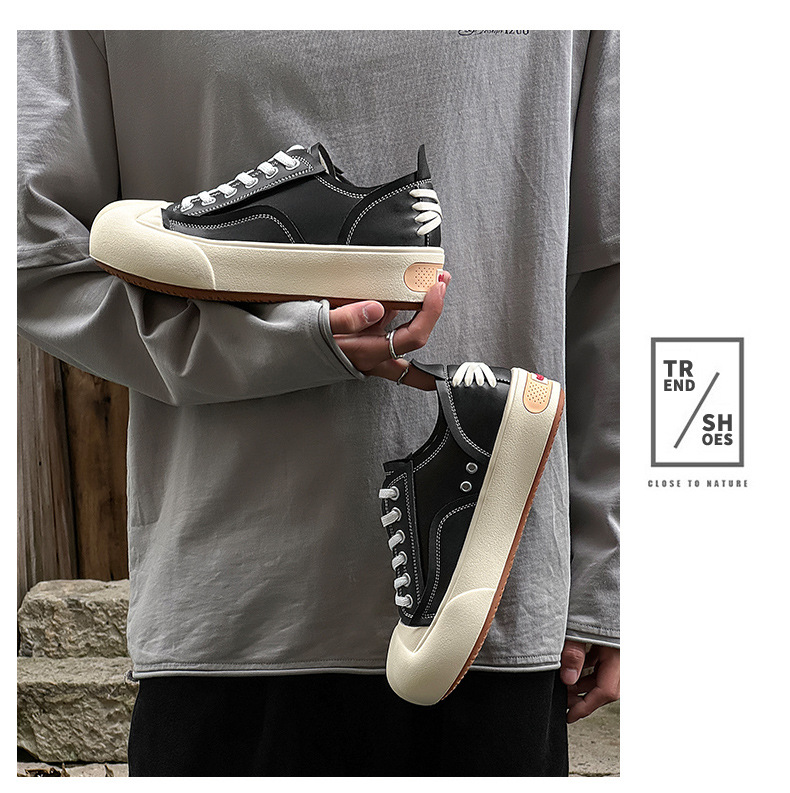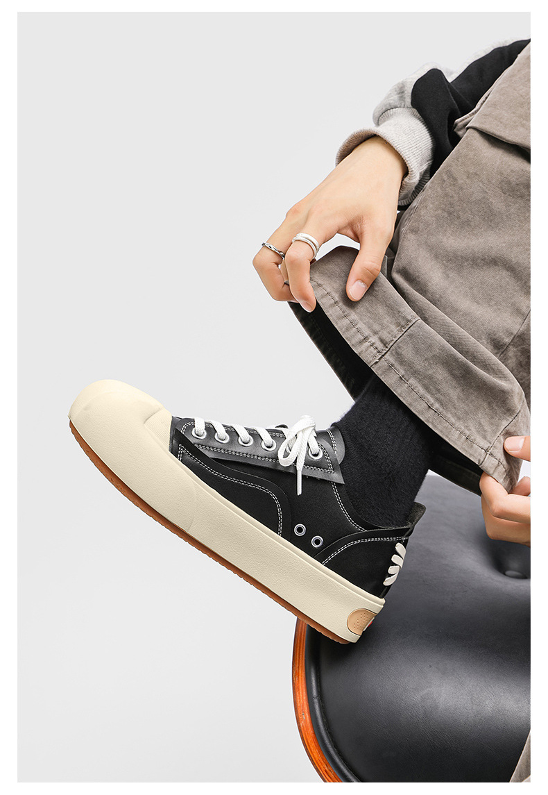 전국 패션 커플 신발 올매치 캐주얼 블랙 캔버스 신발 큰 머리 신발 2024 새로운 남성과 여성의 토끼 클로 신발스토어 가기