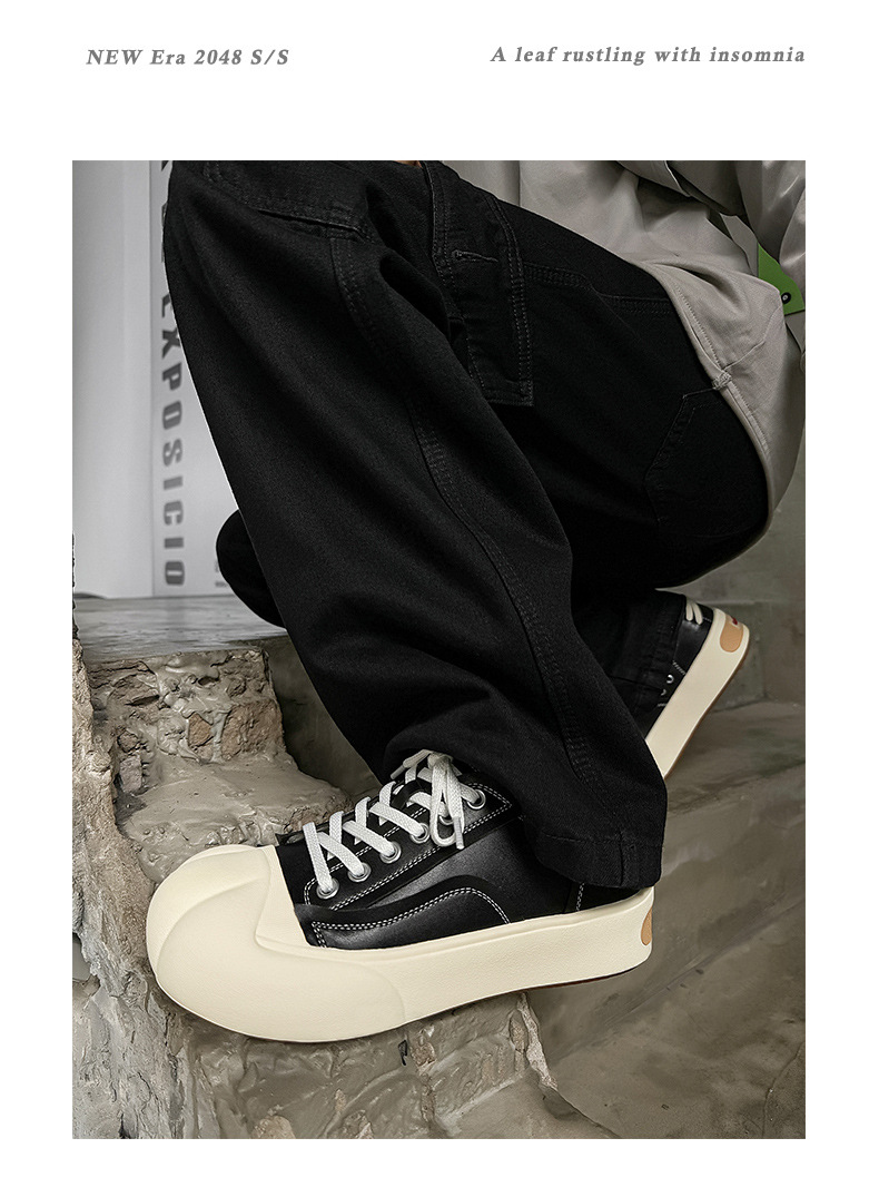 전국 패션 커플 신발 올매치 캐주얼 블랙 캔버스 신발 큰 머리 신발 2024 새로운 남성과 여성의 토끼 클로 신발