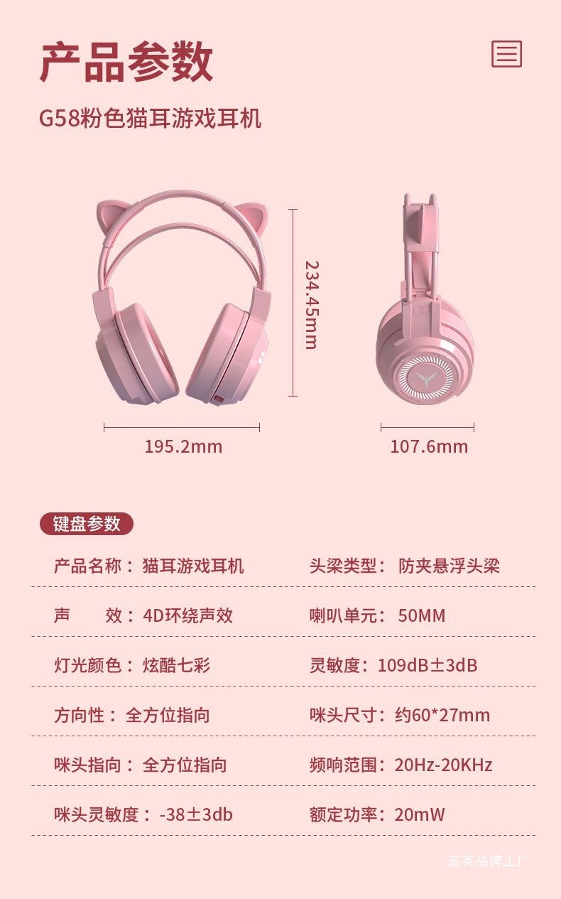 핑크 고양이 귀 헤드셋 귀여운 가리 하트 노트북 데스크톱 컴퓨터 게임 전자 스포츠 유선 헤드셋스토어 가기