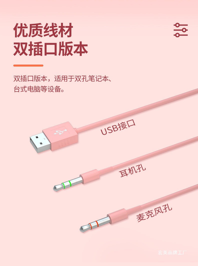 • 핑크색 귀여운 고양이 귀 + 변환 케이블 [3.5 이중 구멍] 업그레이드 버전