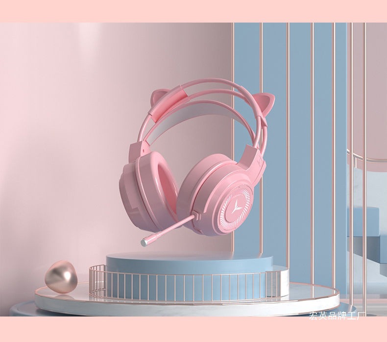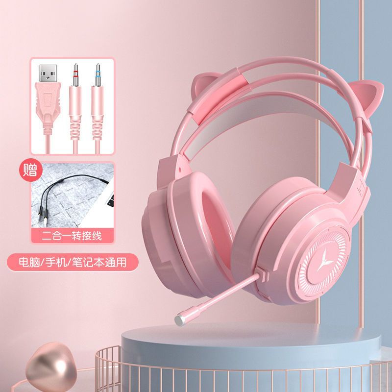 핑크 고양이 귀 헤드셋 귀여운 가리 하트 노트북 데스크톱 컴퓨터 게임 전자 스포츠 유선 헤드셋