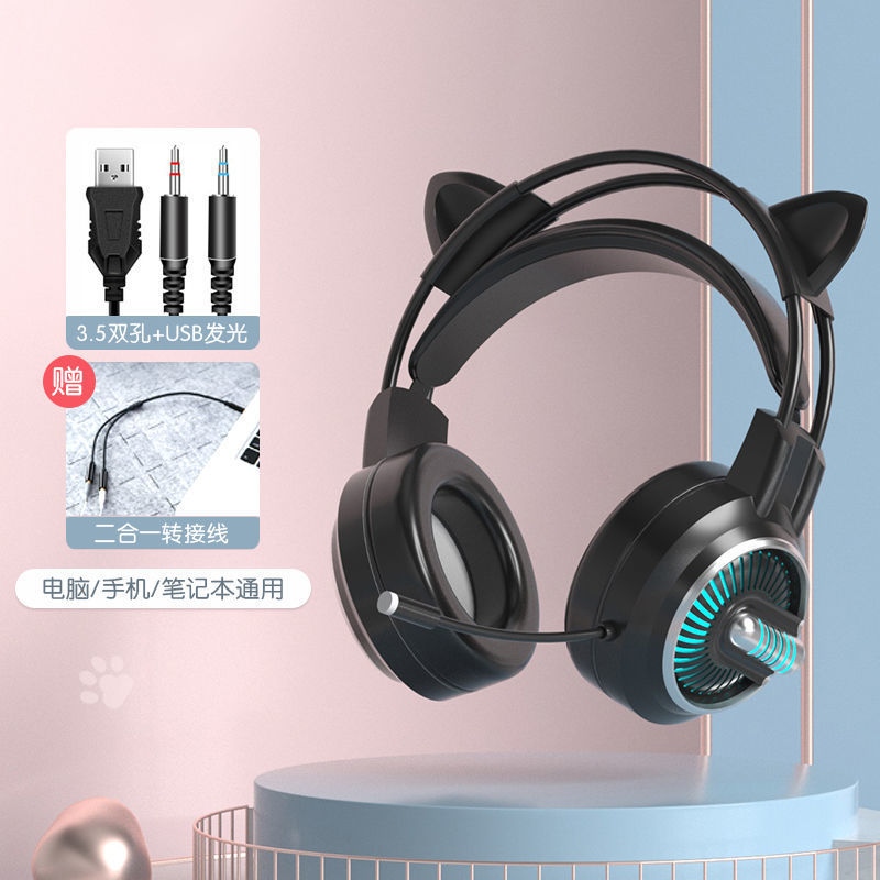 • 시원한 검은 고양이 귀 + 변환 케이블 [3.5 이중 구멍] 업그레이드 버전