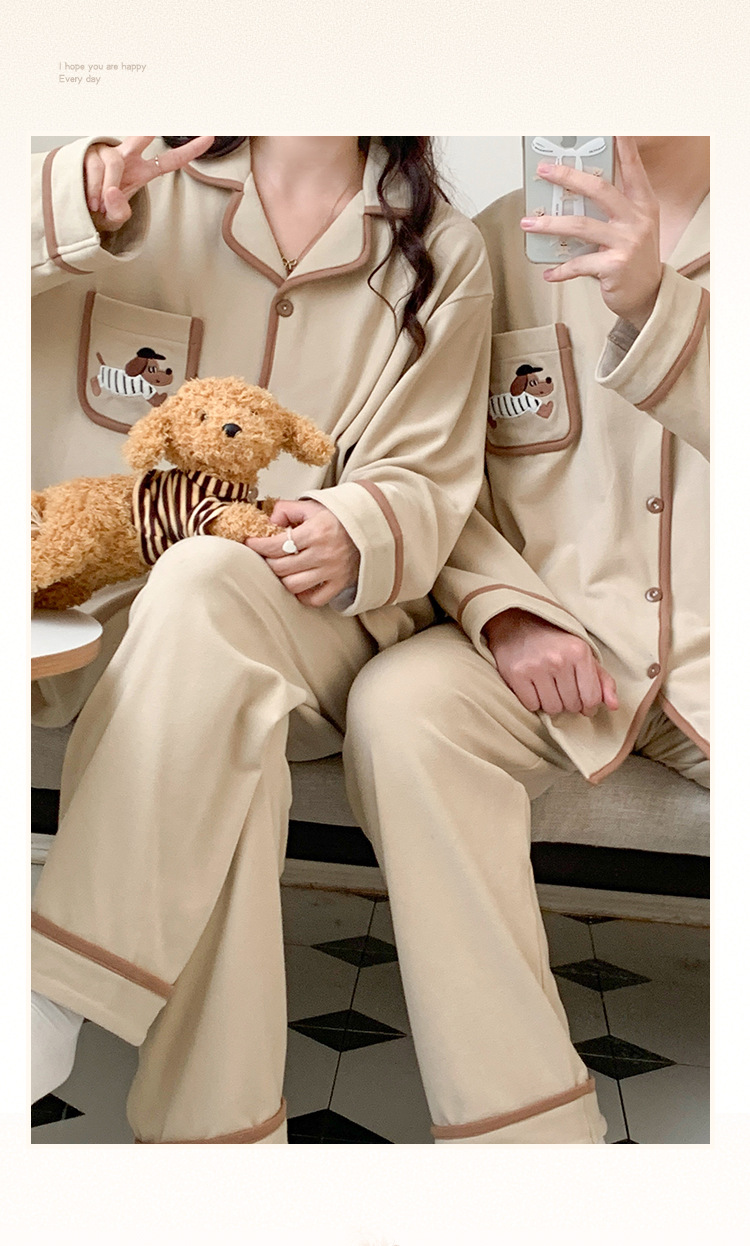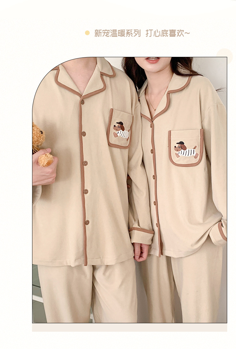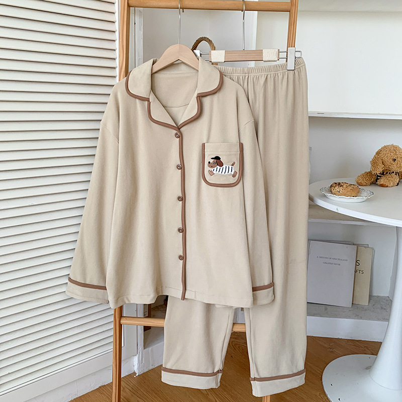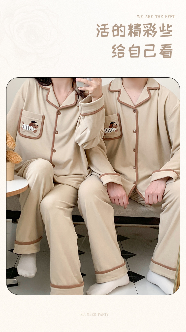 커플 잠옷 여성용 벨벳 가을과 겨울 긴 소매 만화 따뜻한 만화 닥스 훈트 남성 홈 옷 2 피스 세트스토어 가기