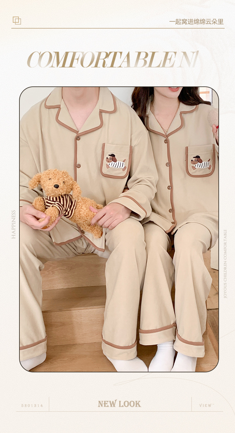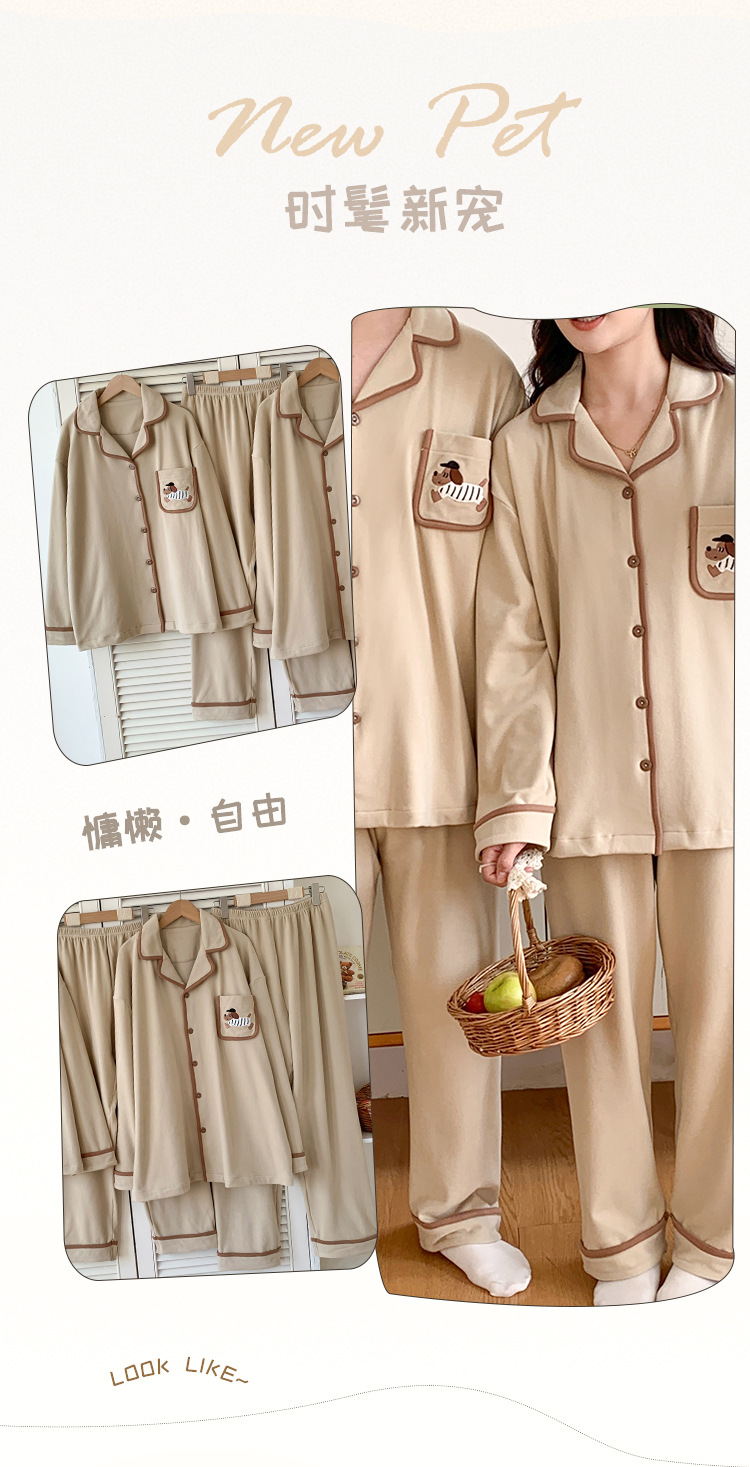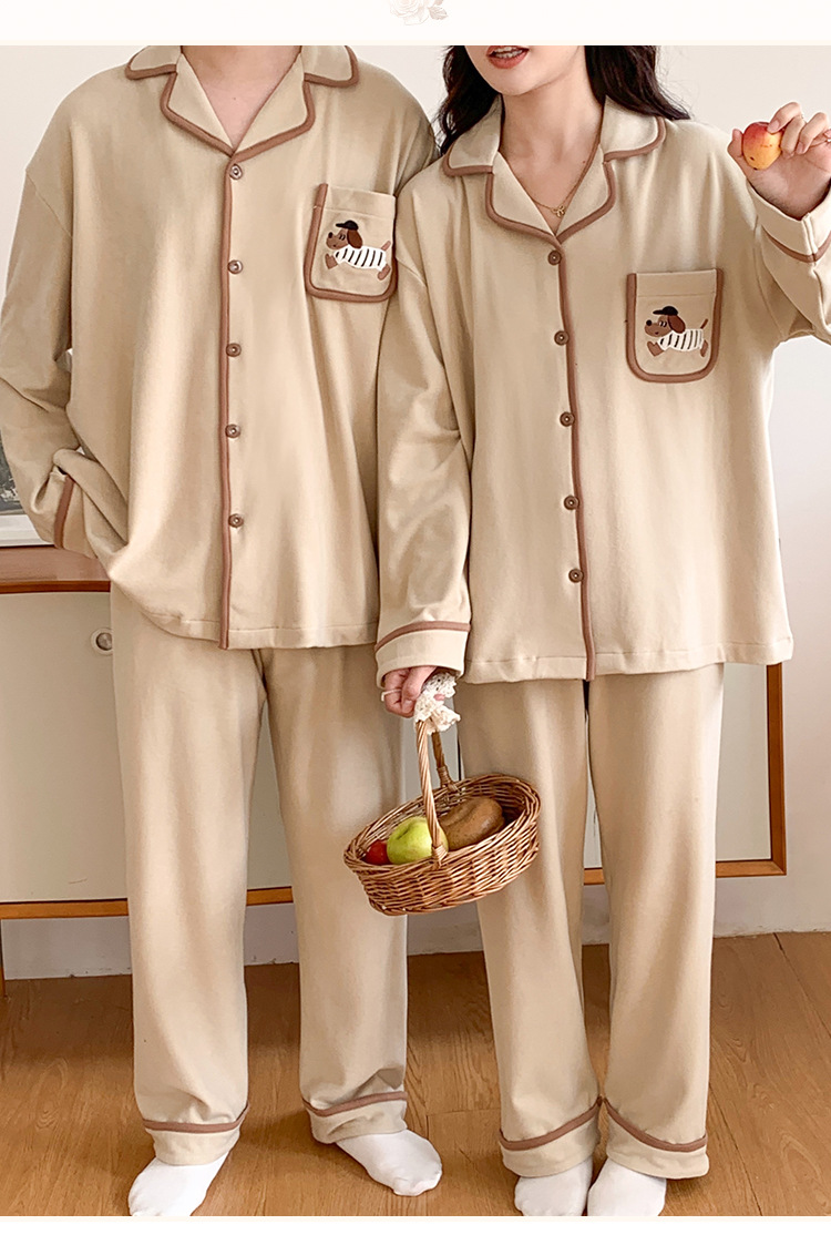 커플 잠옷 여성용 벨벳 가을과 겨울 긴 소매 만화 따뜻한 만화 닥스 훈트 남성 홈 옷 2 피스 세트스토어 가기