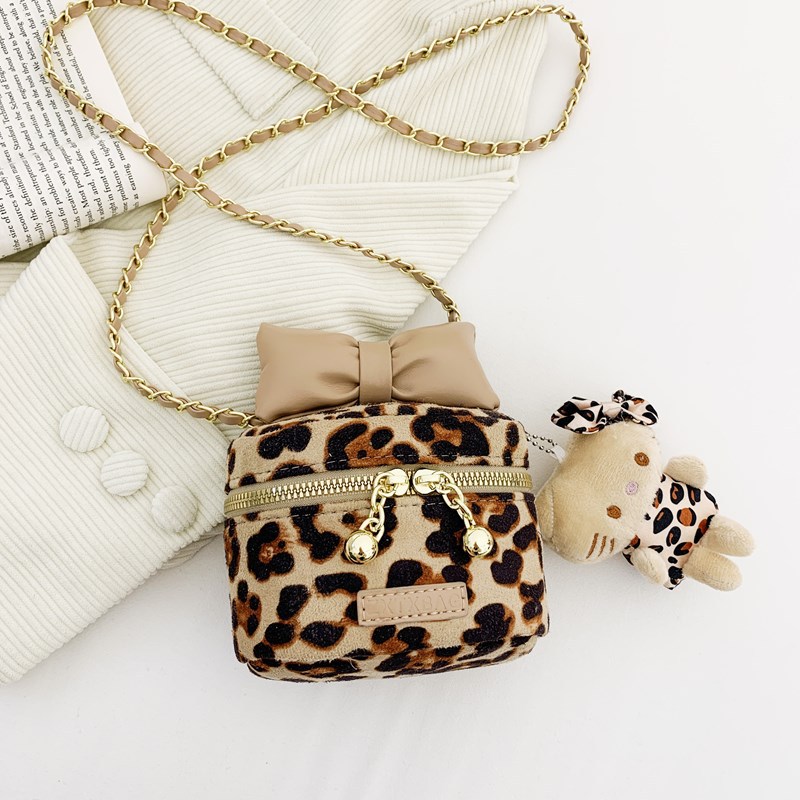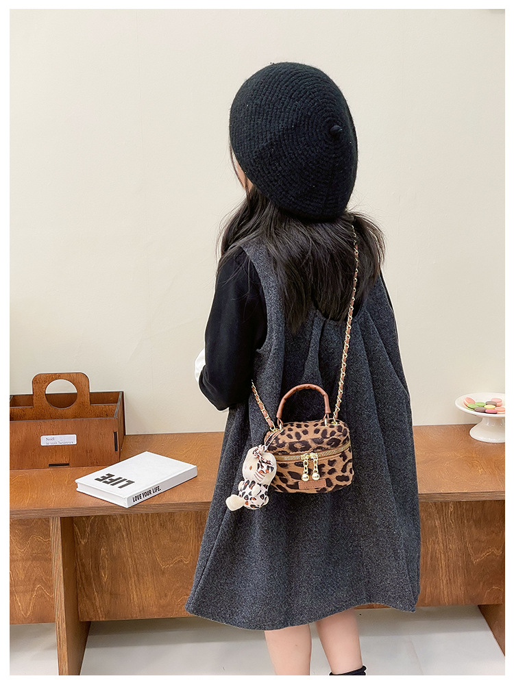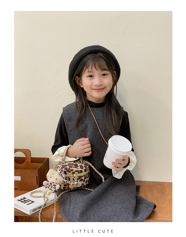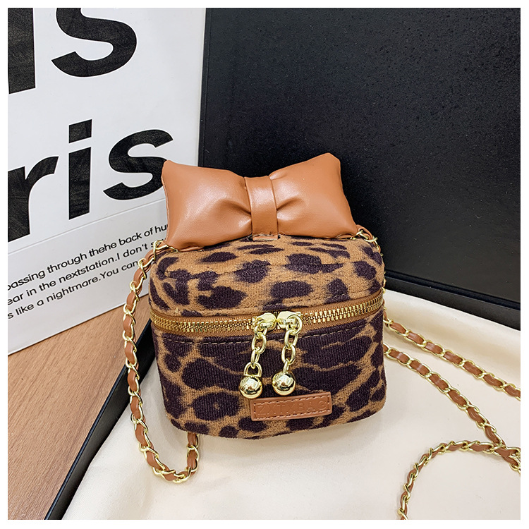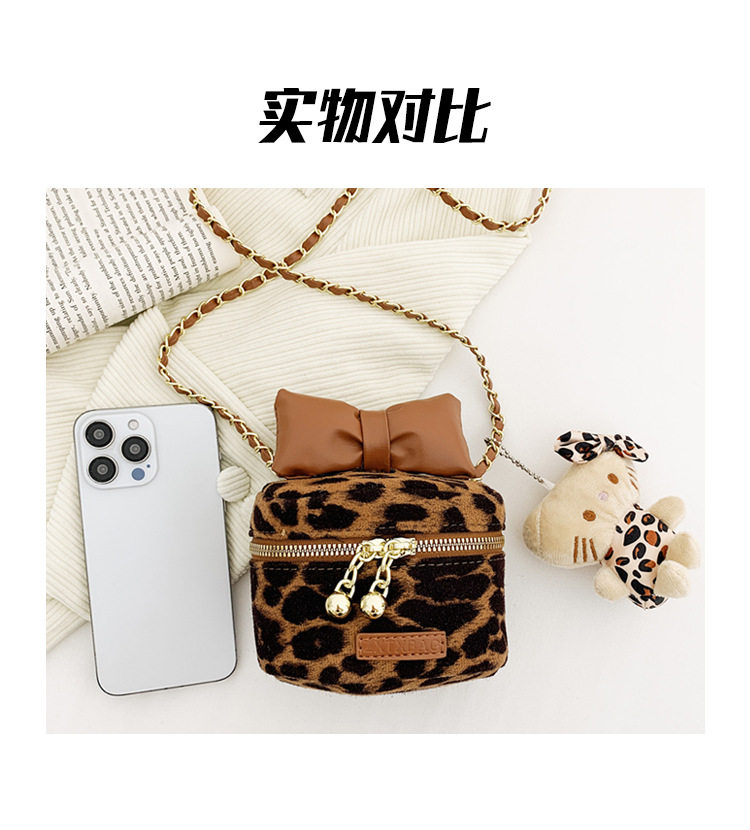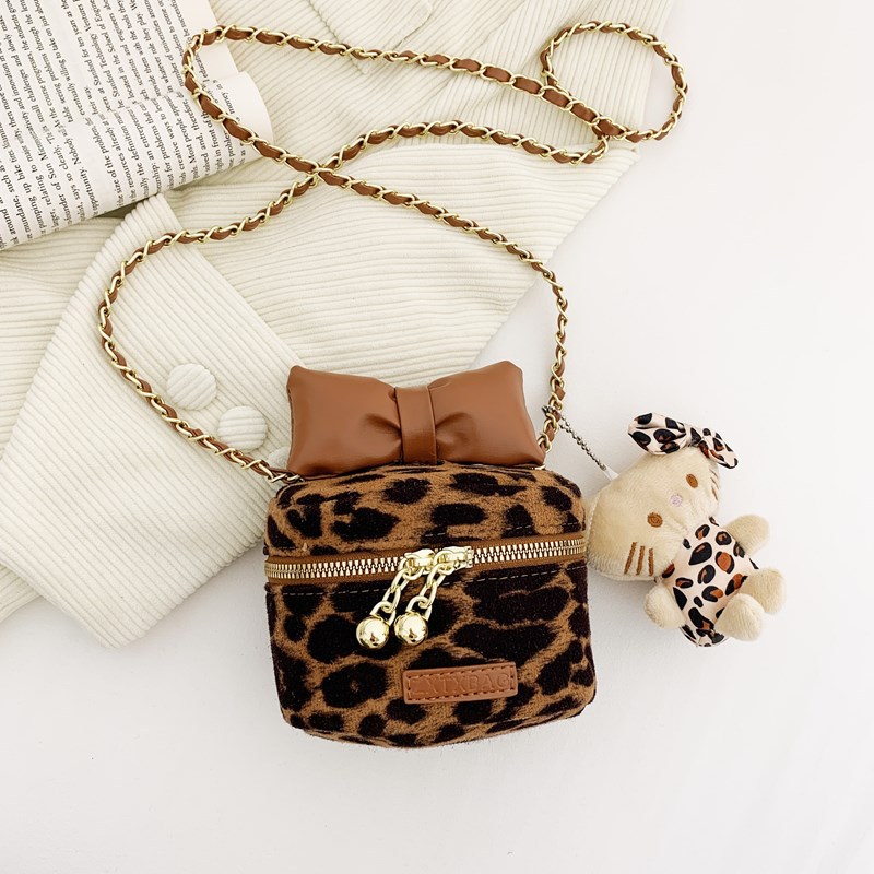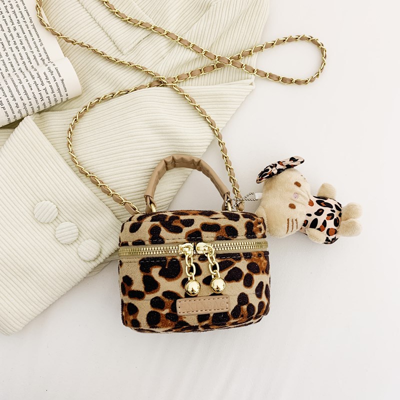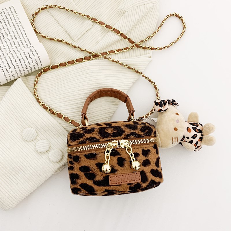 Daifa 어린이 가방 가을과 겨울 새로운 유행 레오파드 무늬 소녀 어깨 가방 다이아몬드 격자 무늬 체인 세련된 아기 크로스 바디 백