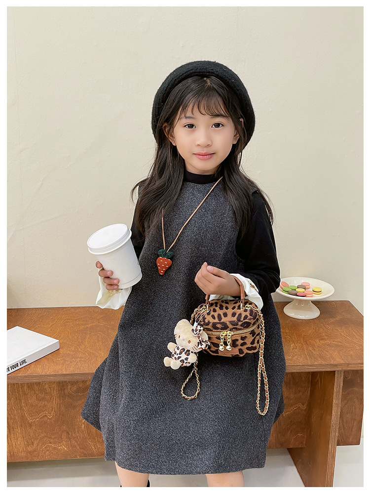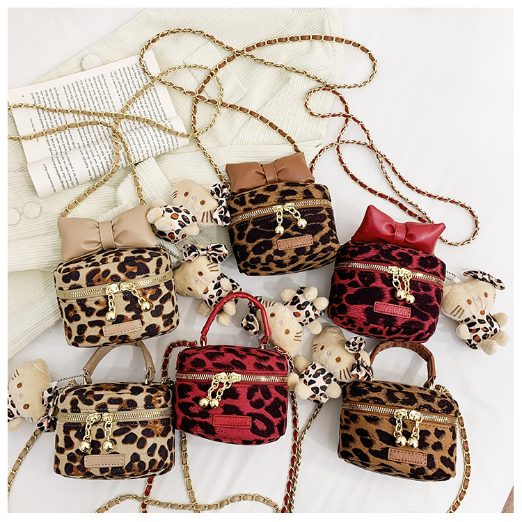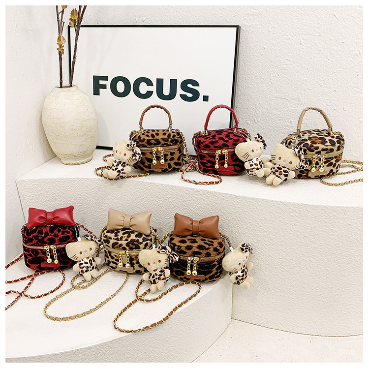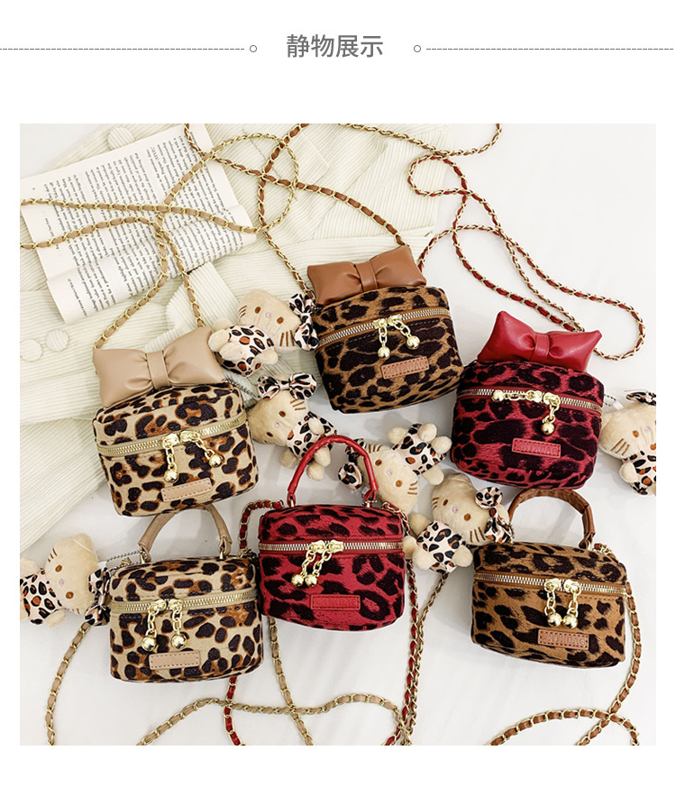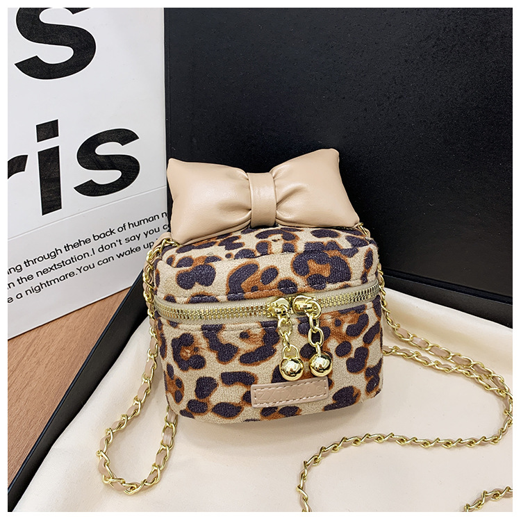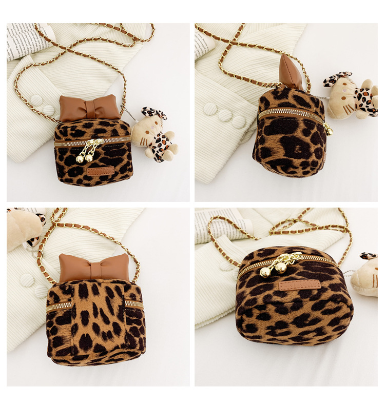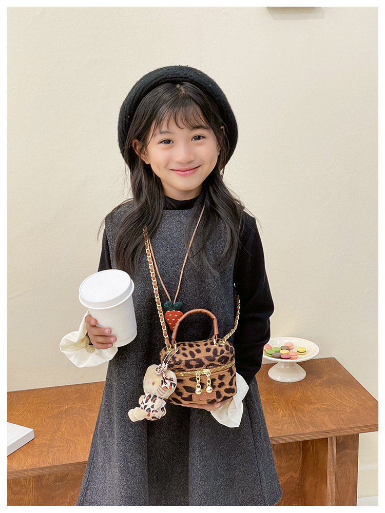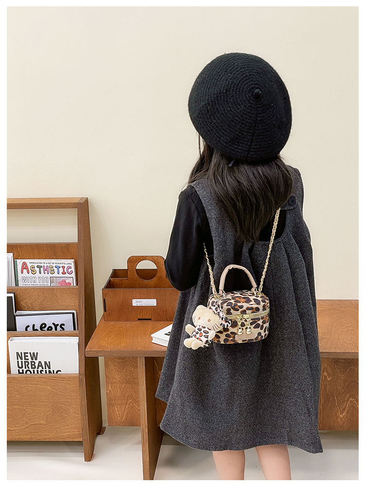 Daifa 어린이 가방 가을과 겨울 새로운 유행 레오파드 무늬 소녀 어깨 가방 다이아몬드 격자 무늬 체인 세련된 아기 크로스 바디 백
