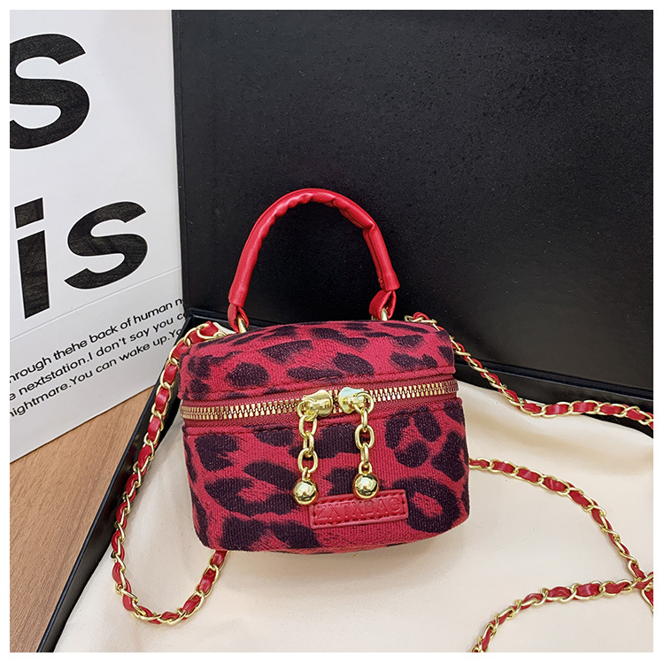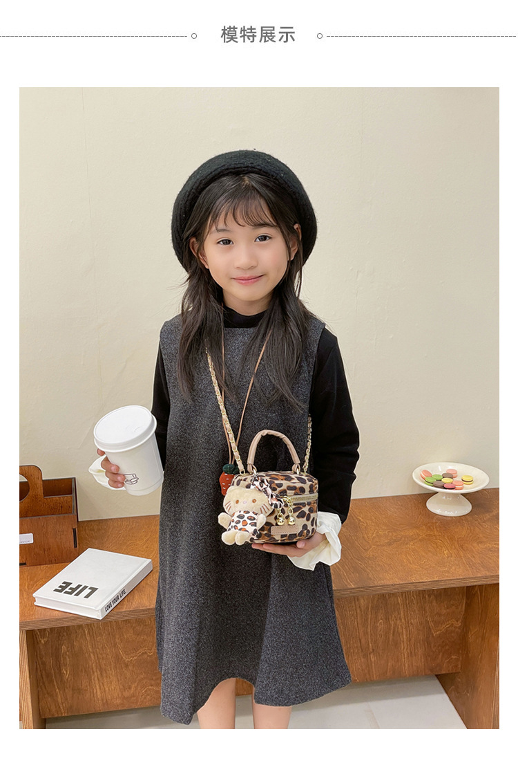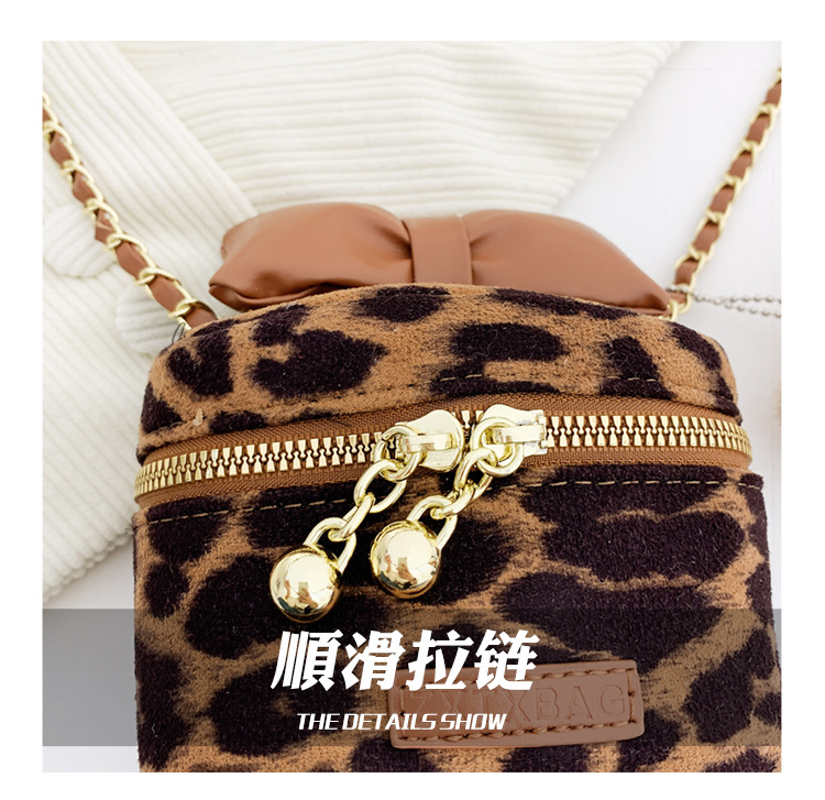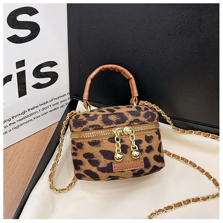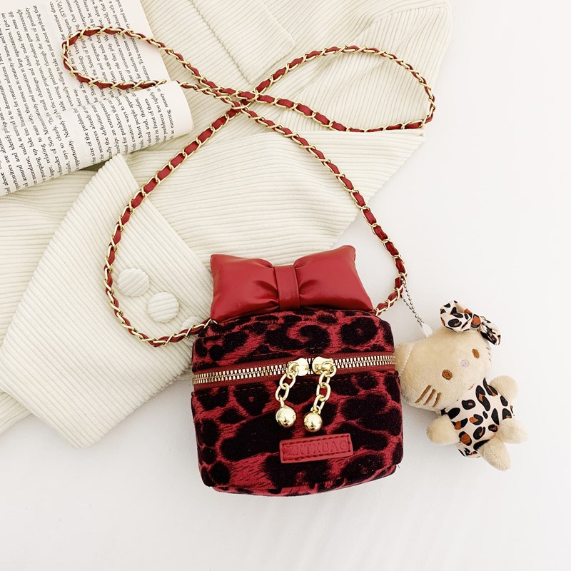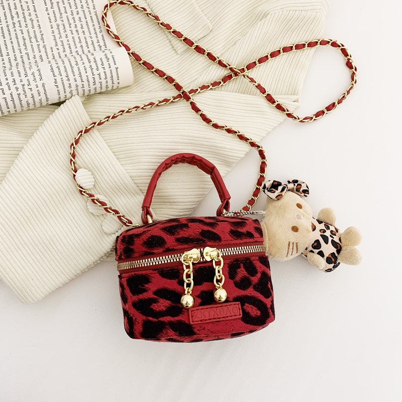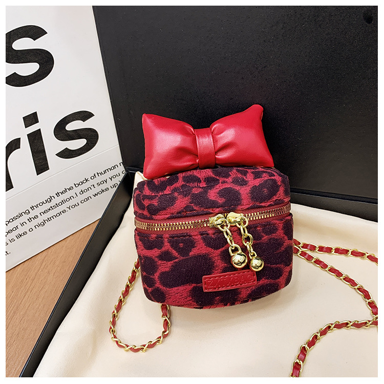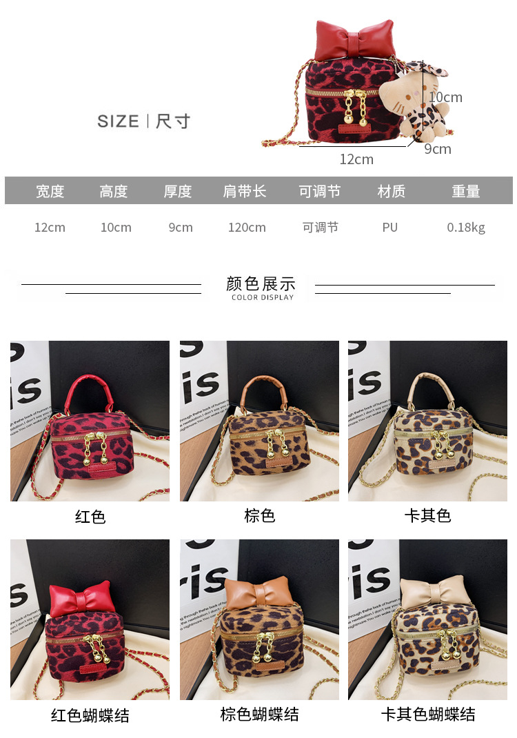 Daifa 어린이 가방 가을과 겨울 새로운 유행 레오파드 무늬 소녀 어깨 가방 다이아몬드 격자 무늬 체인 세련된 아기 크로스 바디 백