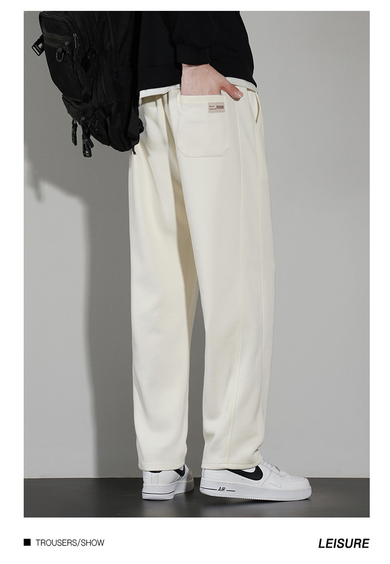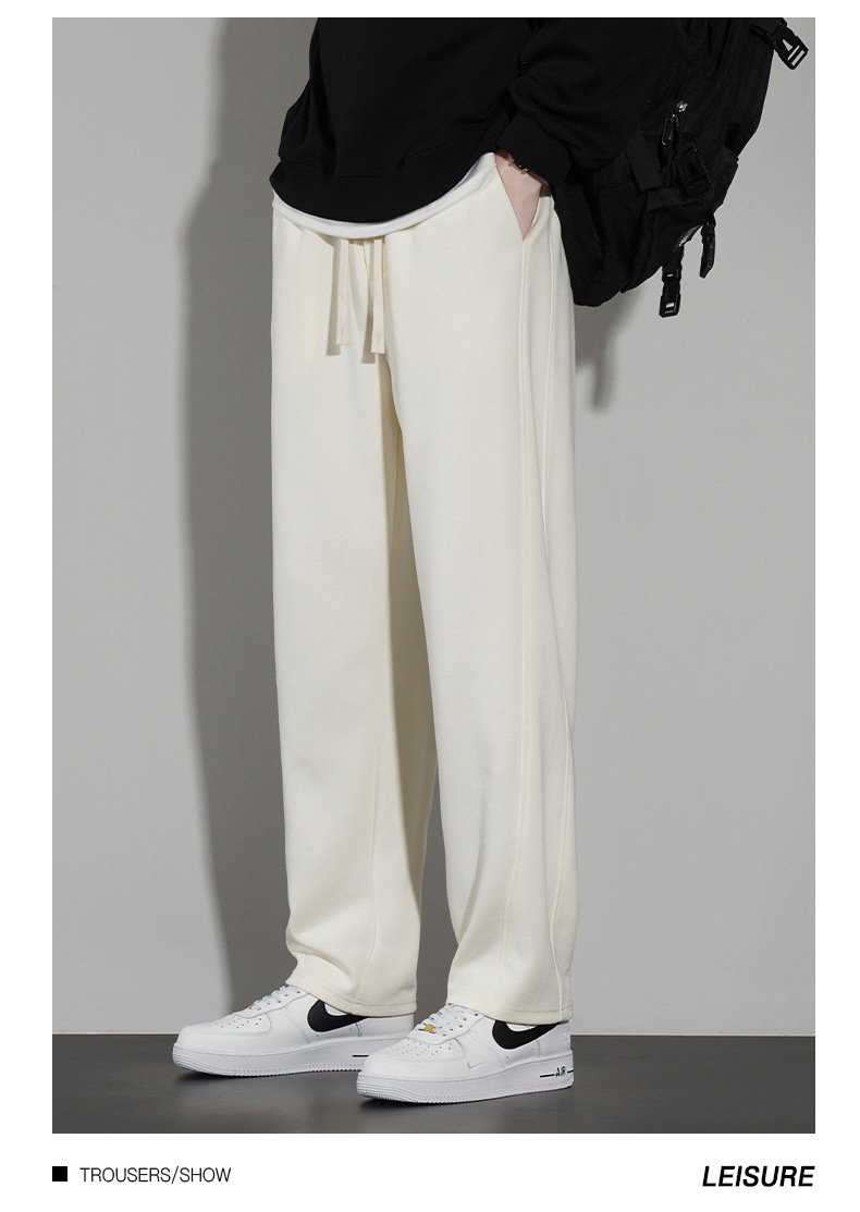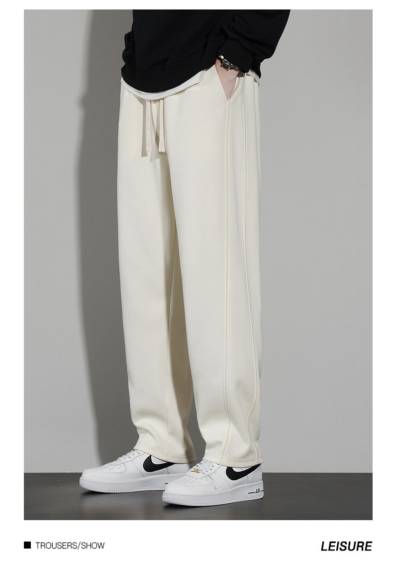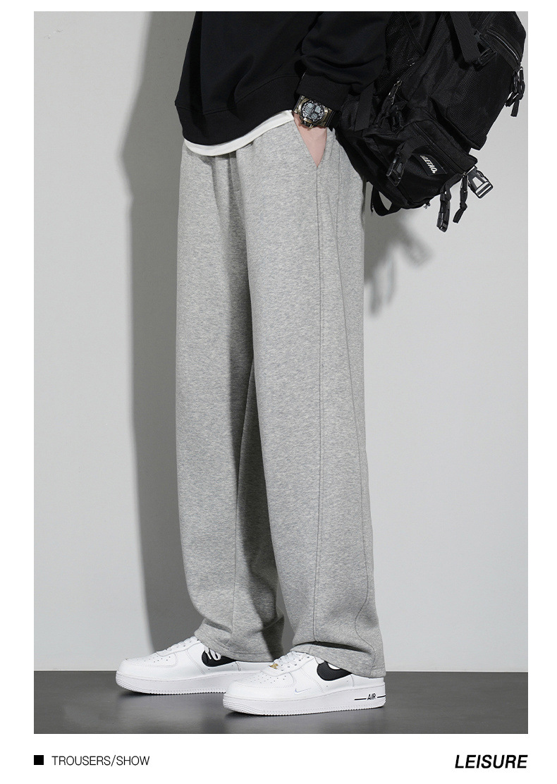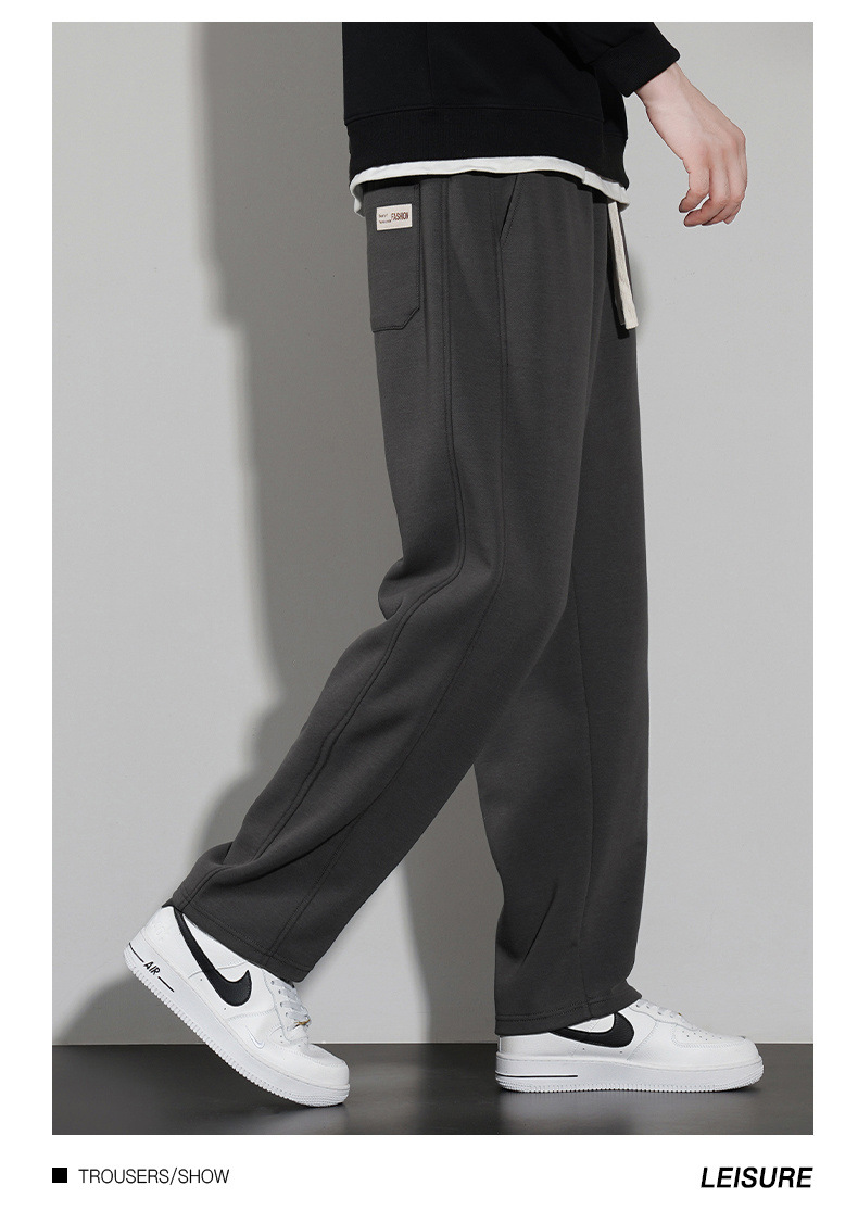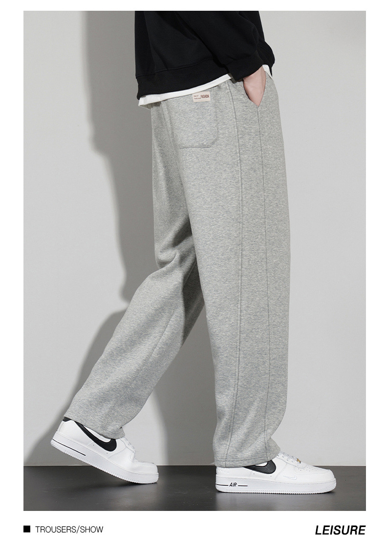 국경 슈퍼 부드러운 가을과 겨울 남자 캐주얼 스포츠 스트레이트 바지 홍콩 스타일 느슨한 기모 두꺼운 와이드 레그 스포츠 바지스토어 가기