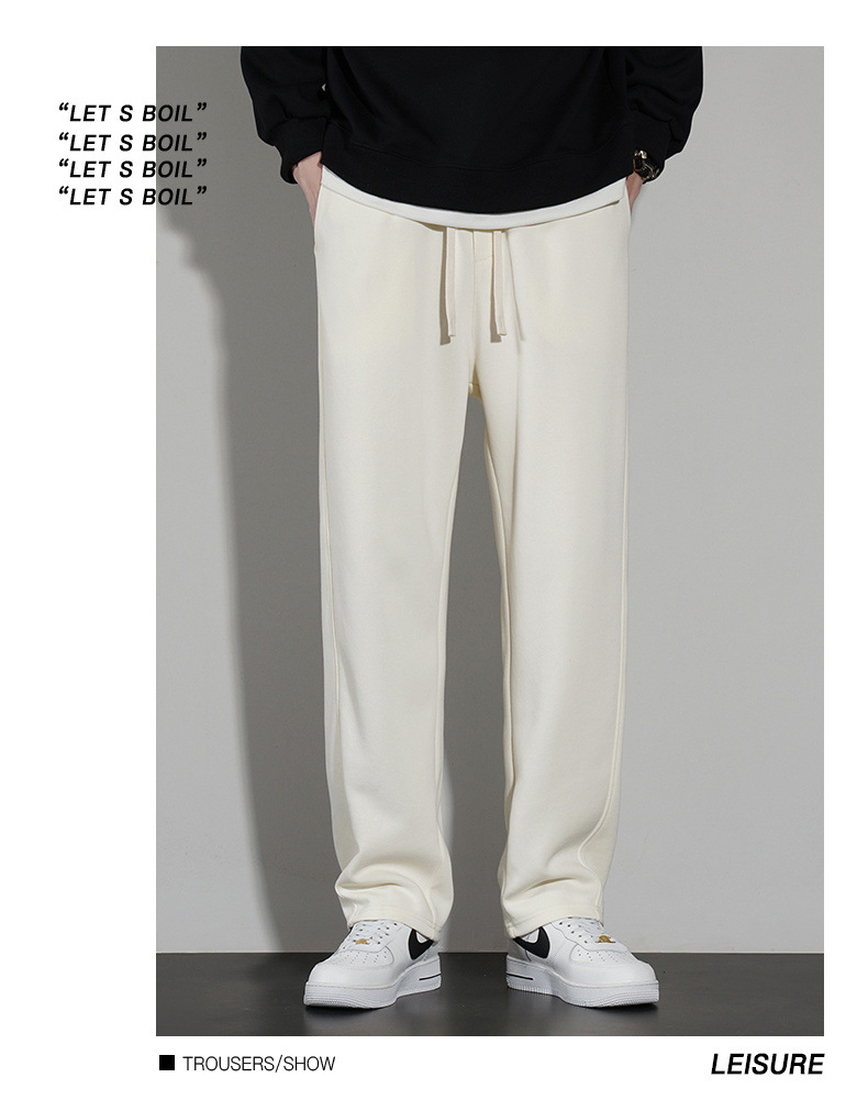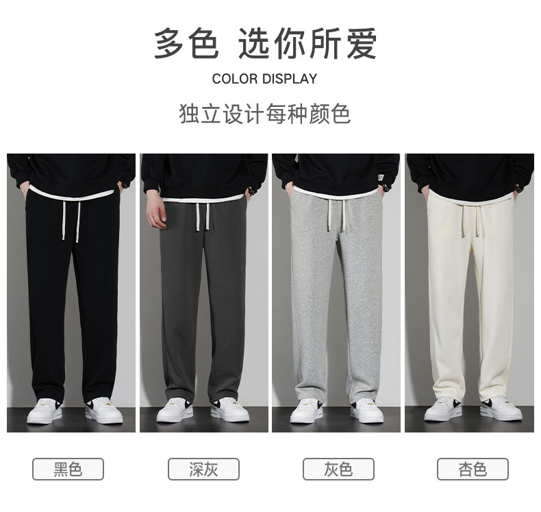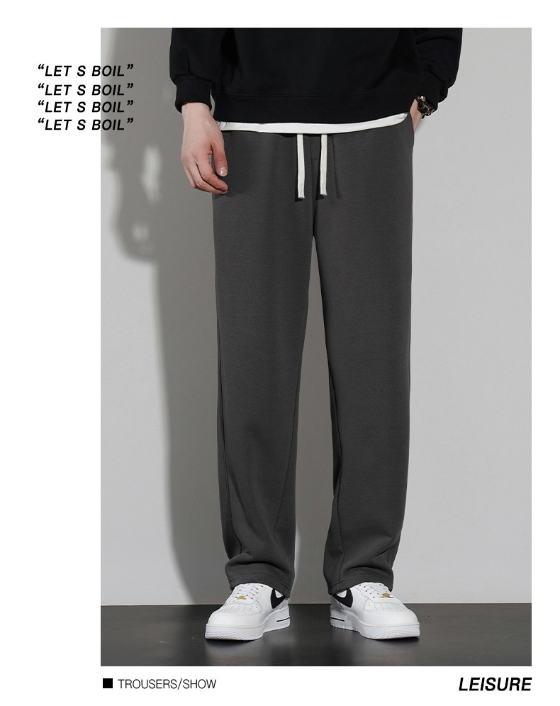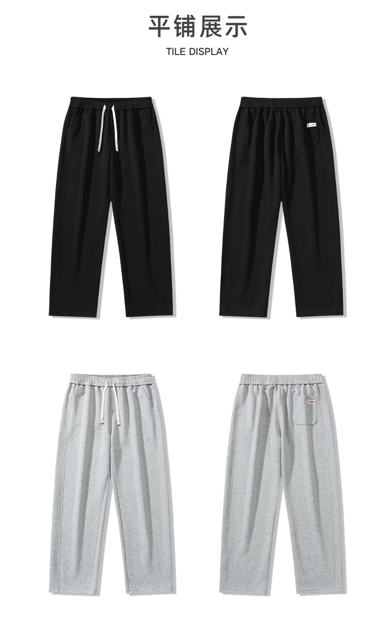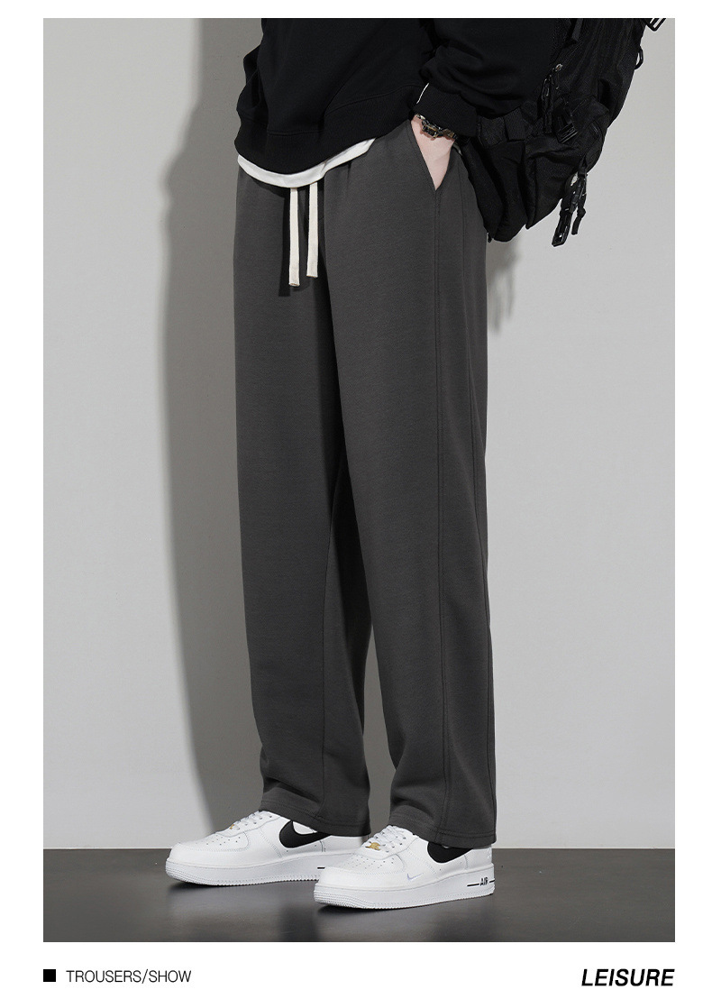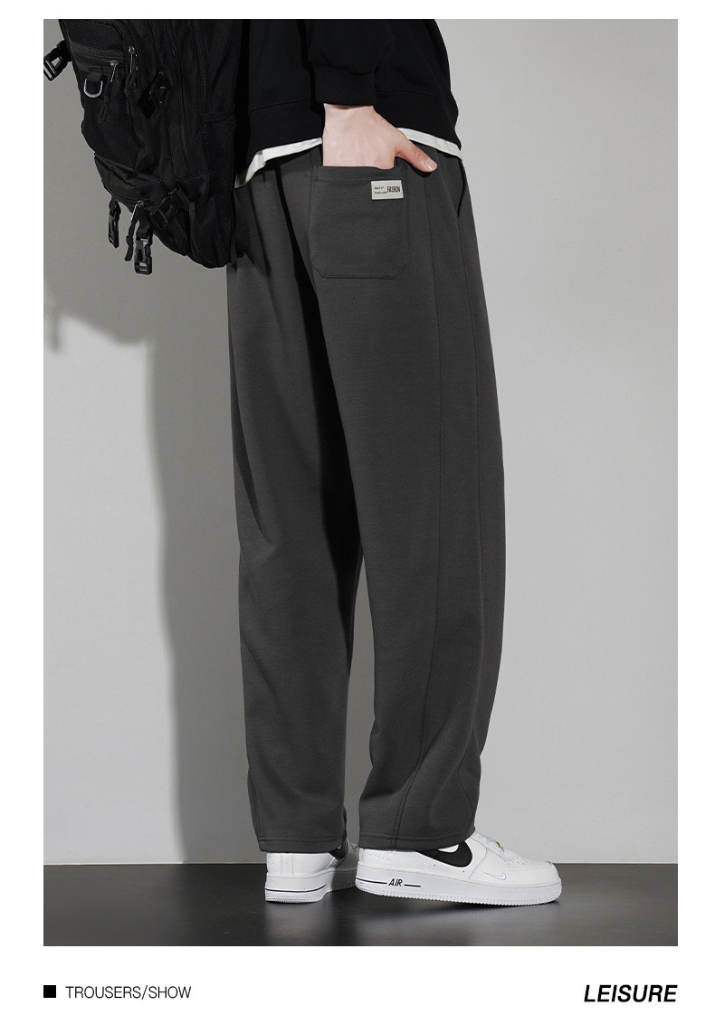 국경 슈퍼 부드러운 가을과 겨울 남자 캐주얼 스포츠 스트레이트 바지 홍콩 스타일 느슨한 기모 두꺼운 와이드 레그 스포츠 바지스토어 가기
