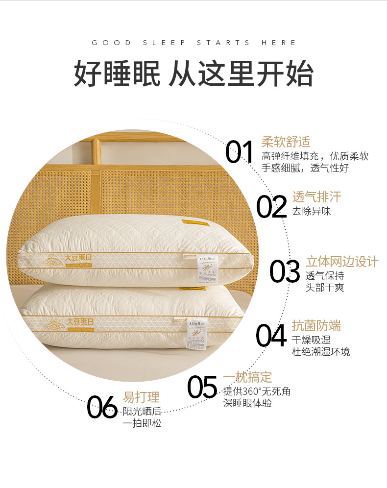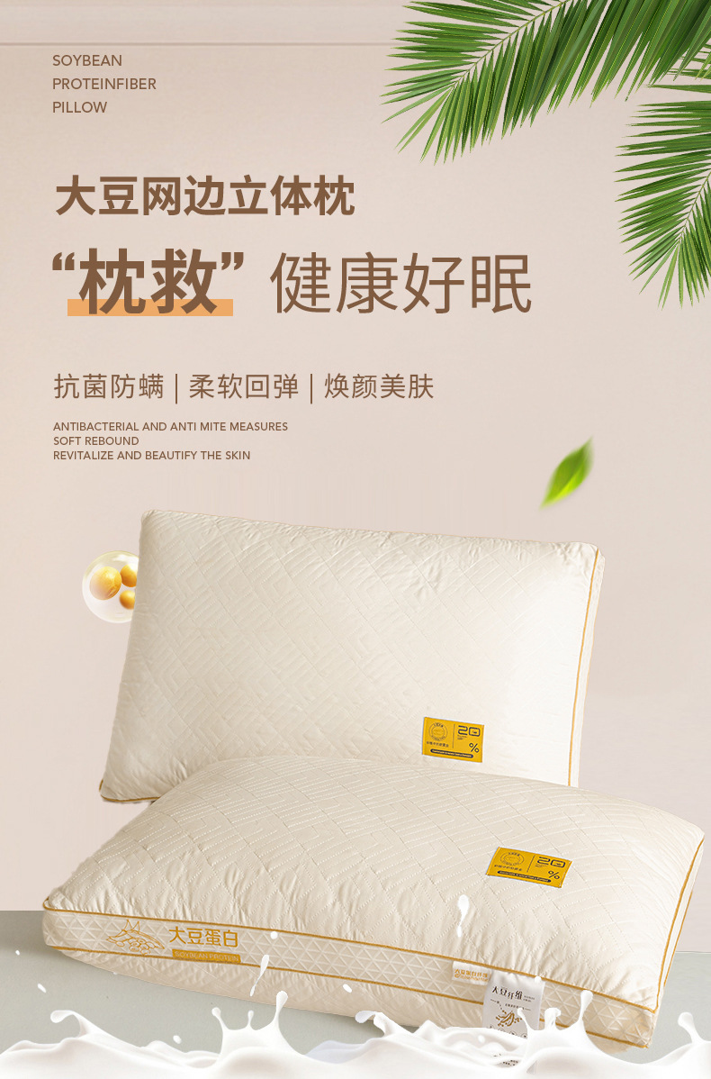 콩 섬유 베개 스테레오 베개 단일 쌍 높은 리바운드 자궁 경부 척추 보호 호텔 학생 가구 베개 도매스토어 가기