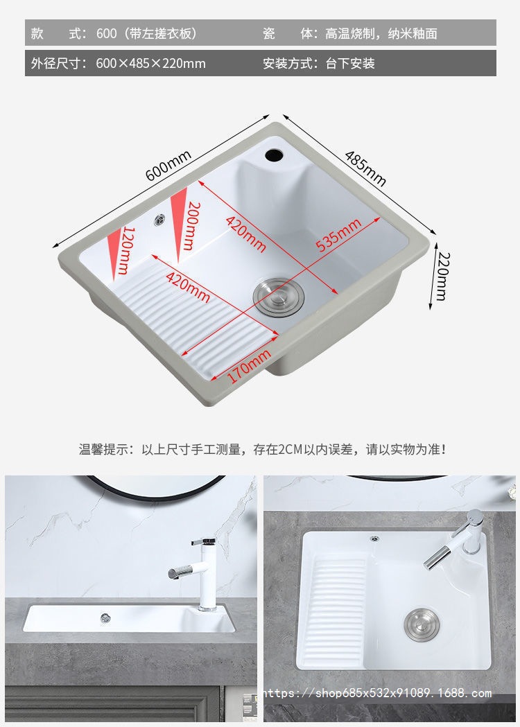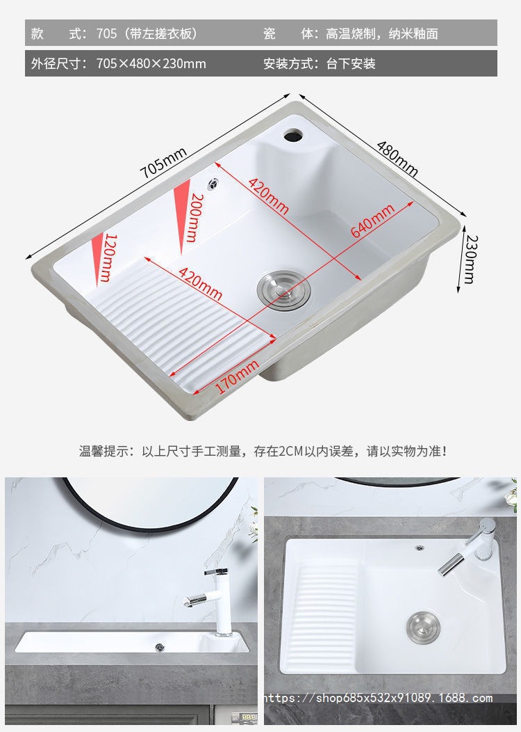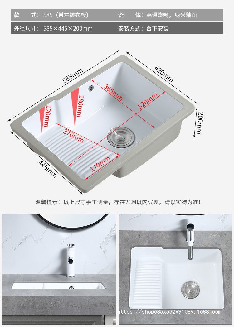 청소 및 불타는 발코니 세면대 임베디드 카운터 아래 세면대 세라믹 세탁 세면대 세면대 세탁 용 세면대스토어 가기