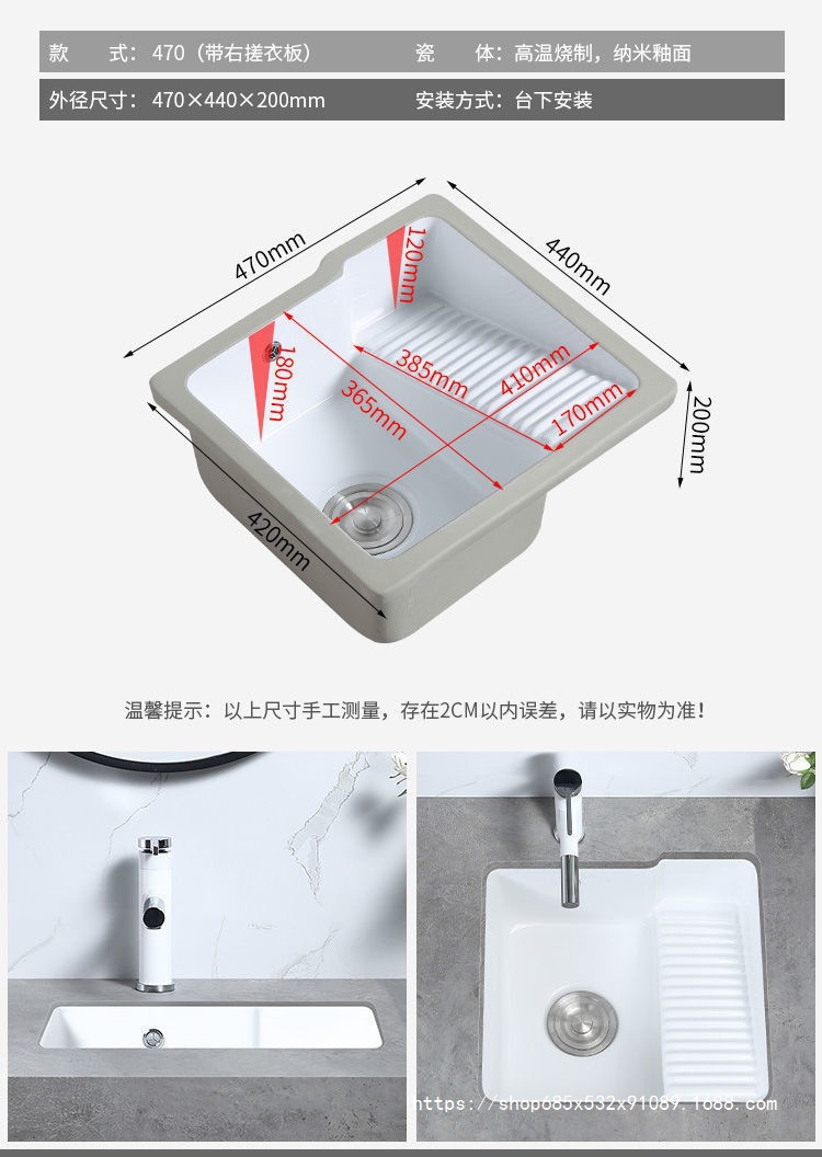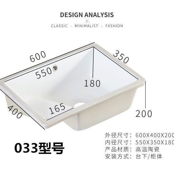 청소 및 불타는 발코니 세면대 임베디드 카운터 아래 세면대 세라믹 세탁 세면대 세면대 세탁 용 세면대
