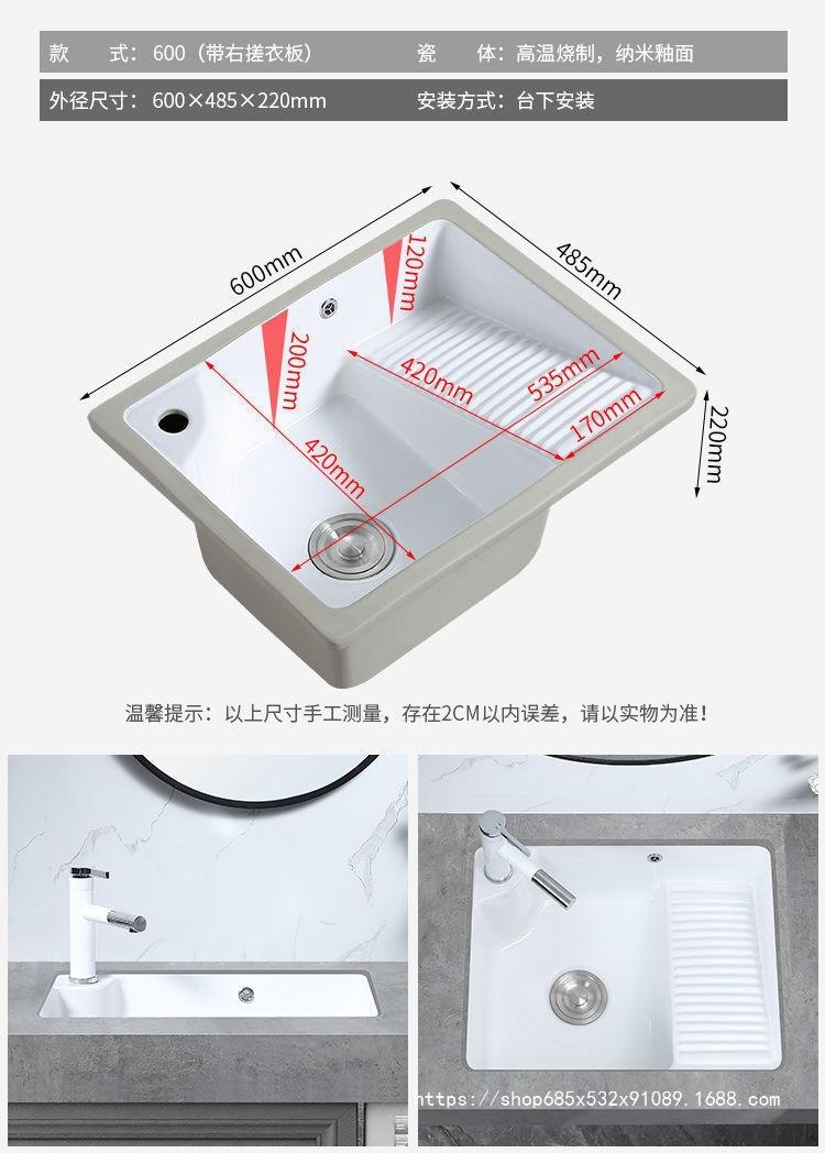 • 600*485*220 단일 오른쪽 세면대에는 물이 함께 제공됩니다.