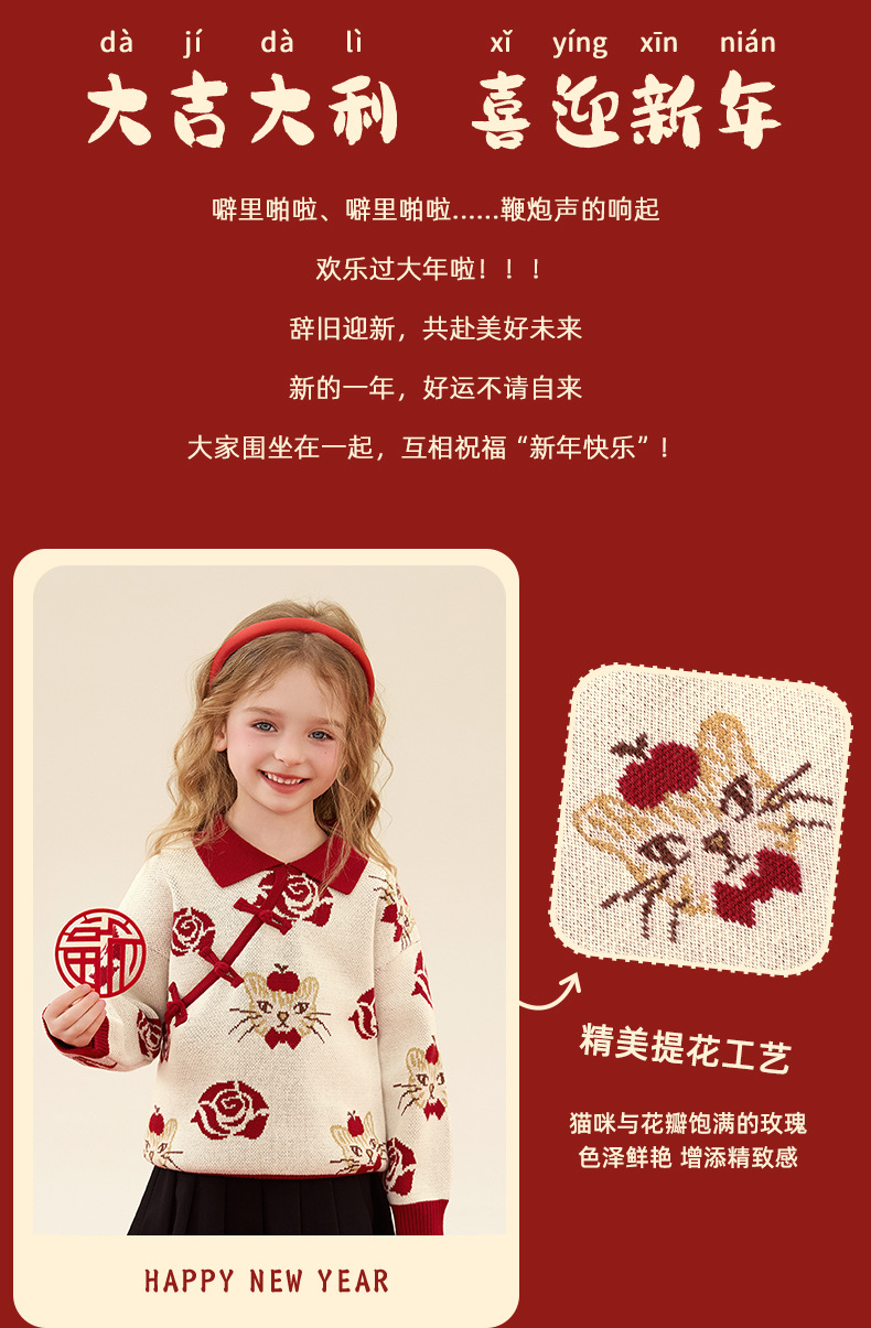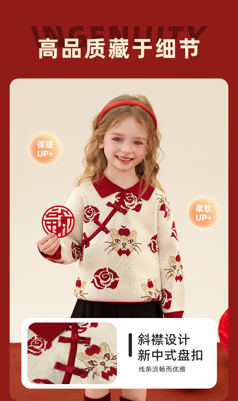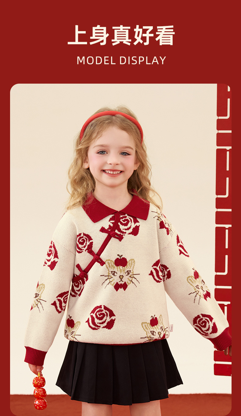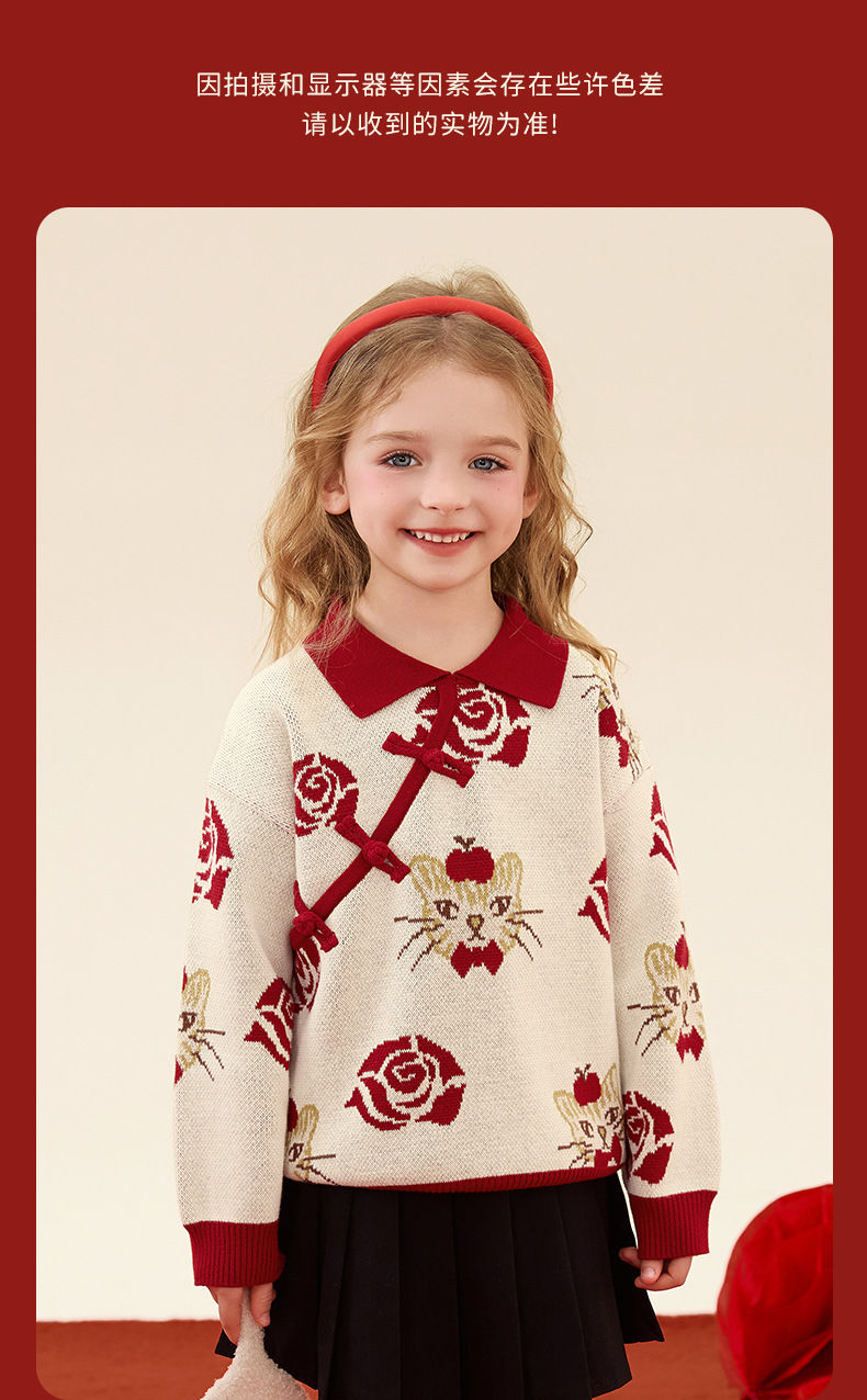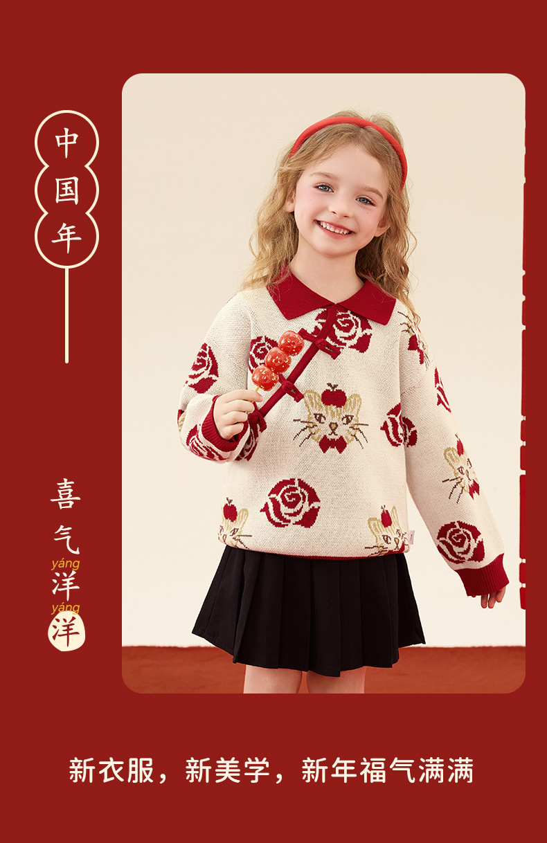 구와미 겨울 설날 중소형 어린이 색조 만화 랜턴 베어 새 중국 스타일 소년 니트 풀오버 스웨터