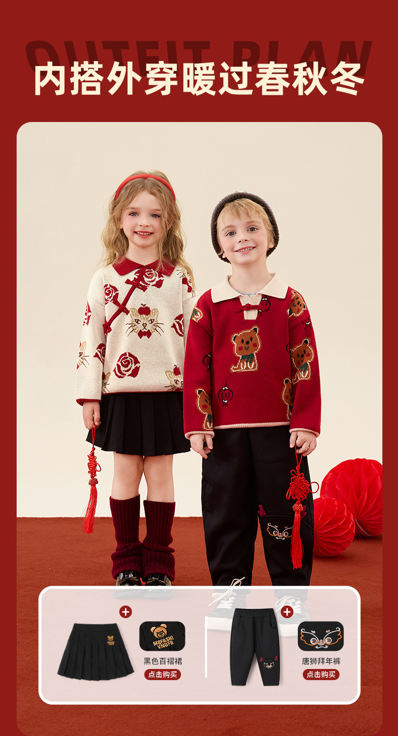 구와미 겨울 설날 중소형 어린이 색조 만화 랜턴 베어 새 중국 스타일 소년 니트 풀오버 스웨터스토어 가기