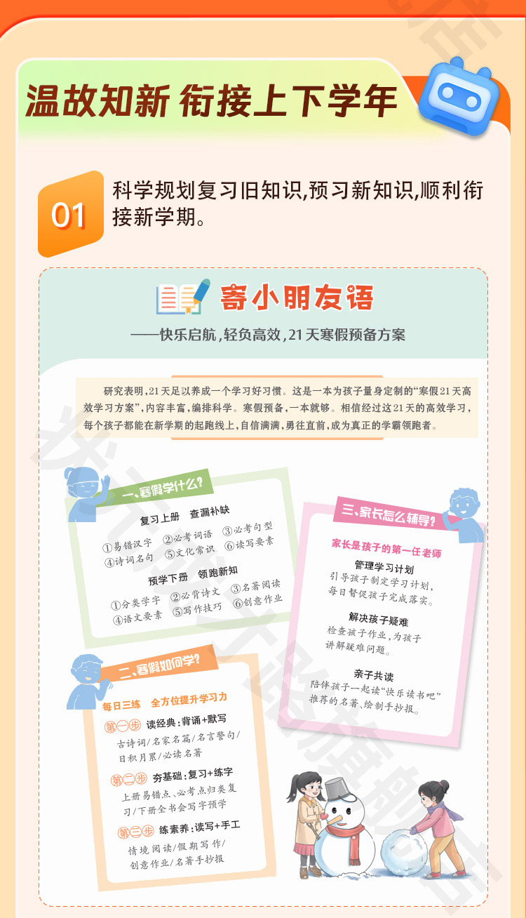 2025 봄 최고 학자 노트 21 일 리드 신학기 겨울 방학 준비 초등학교 중국 수학 겨울 방학 숙제 연결