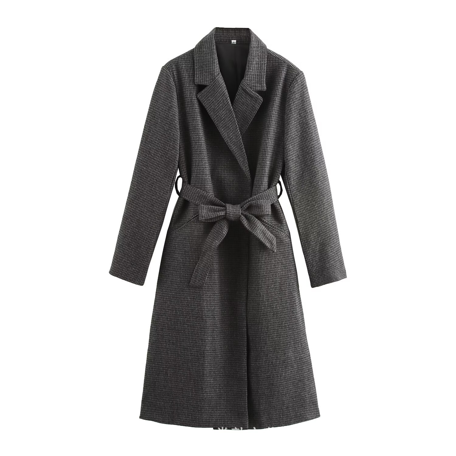 UC & ZA 국경 간 AliExpress 여성복 2024 가을/겨울 새로운 패션 통근 벨트 격자 울 코트스토어 가기