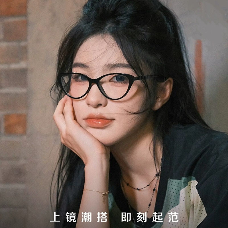 새로운 고급 플레이트 고양이의 눈 안경 프레임 여성의 조정 가능한 정도 안티 블루 라이트 플랫 렌즈 일반 블랙 프레임 근시 프레임