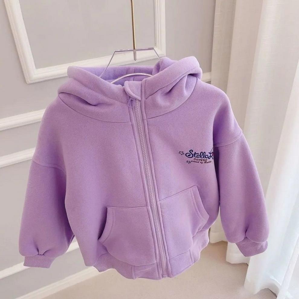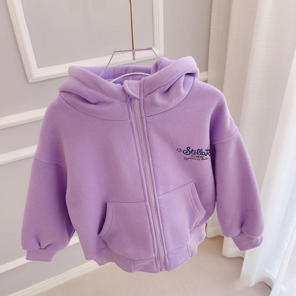 여자 기모 코트 겨울 새로운 서양식 한국 스타일 유행 스타 데일루 어린이 후드 카디건 중 큰 어린이 스웨트 셔츠스토어 가기