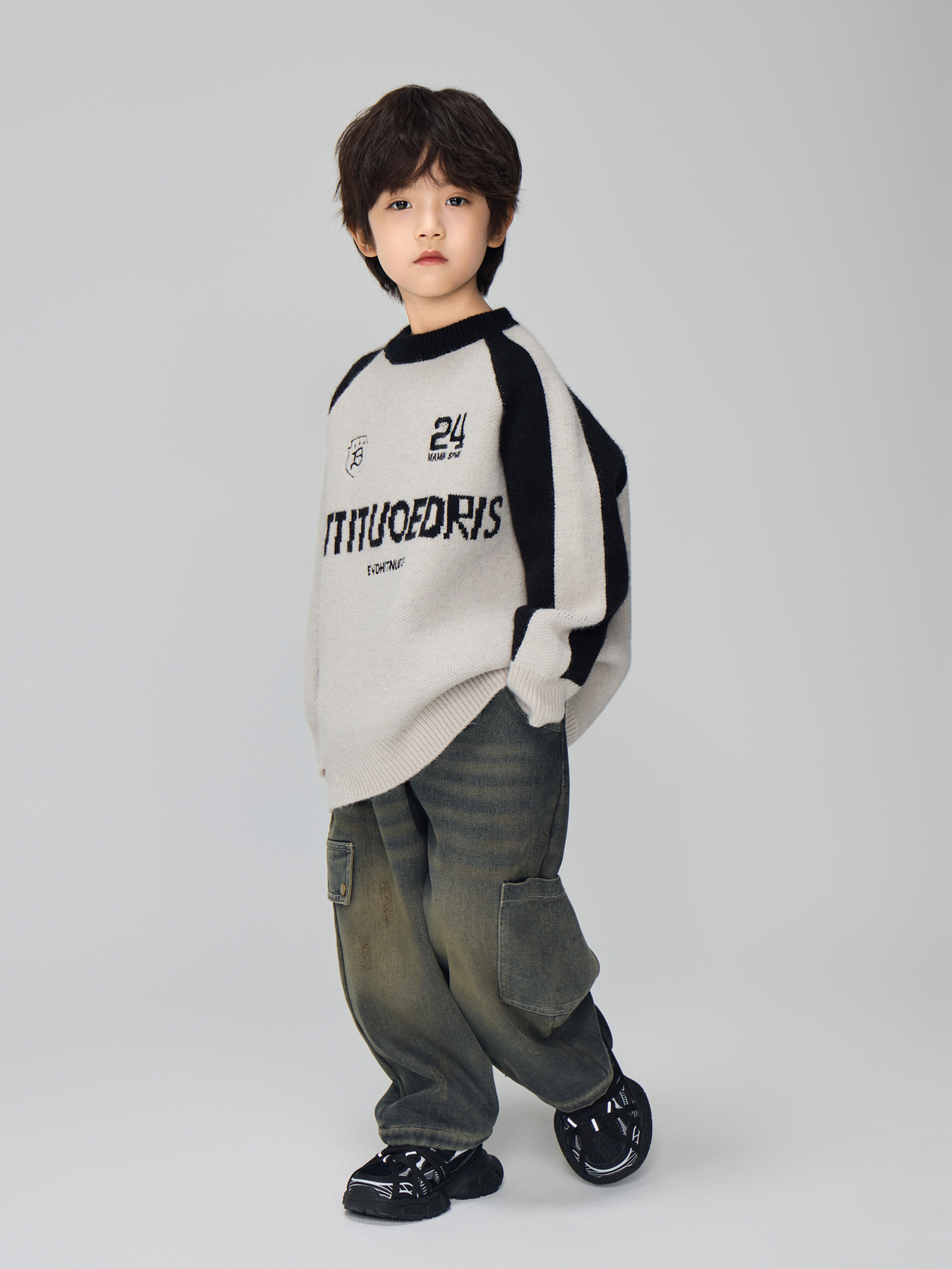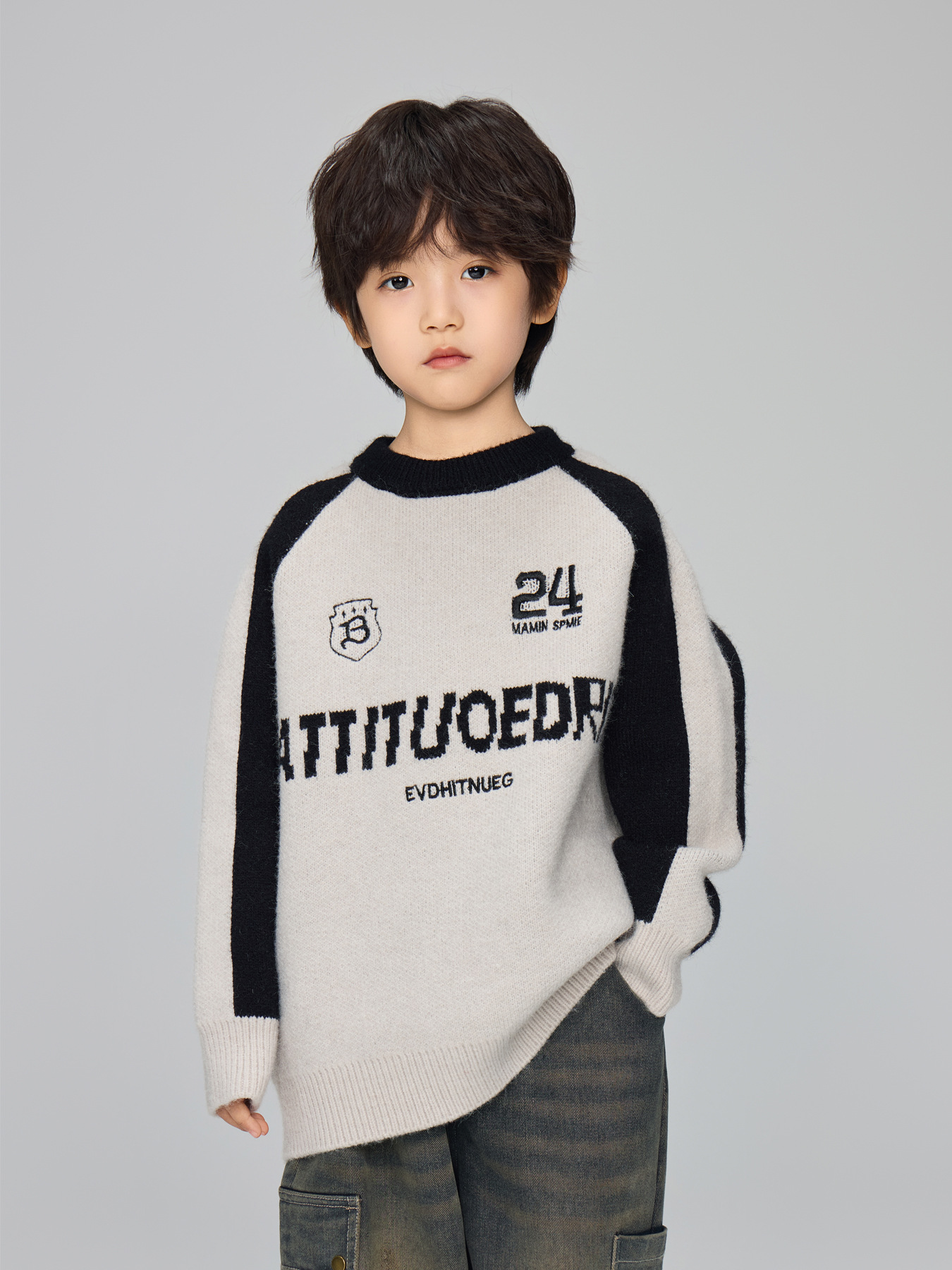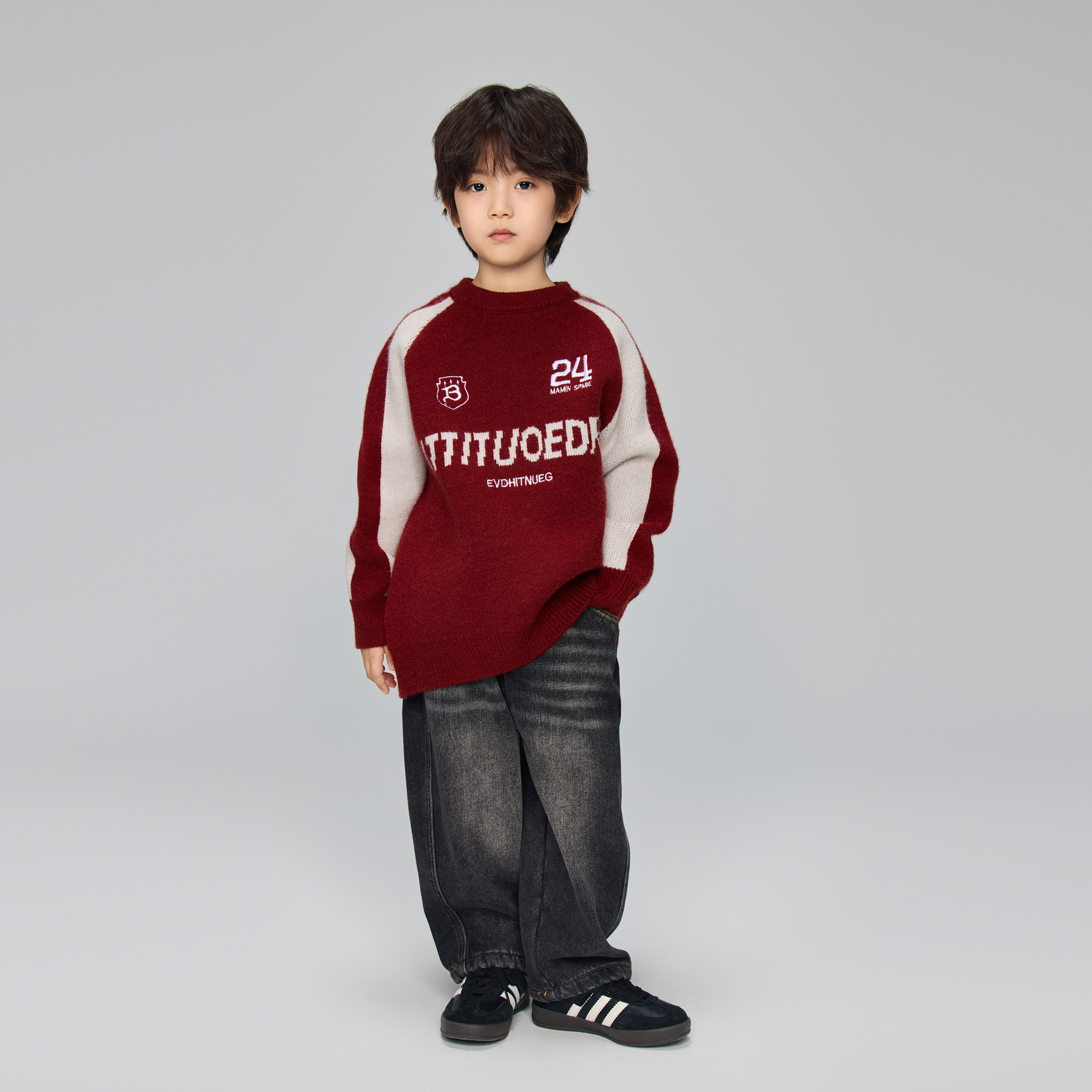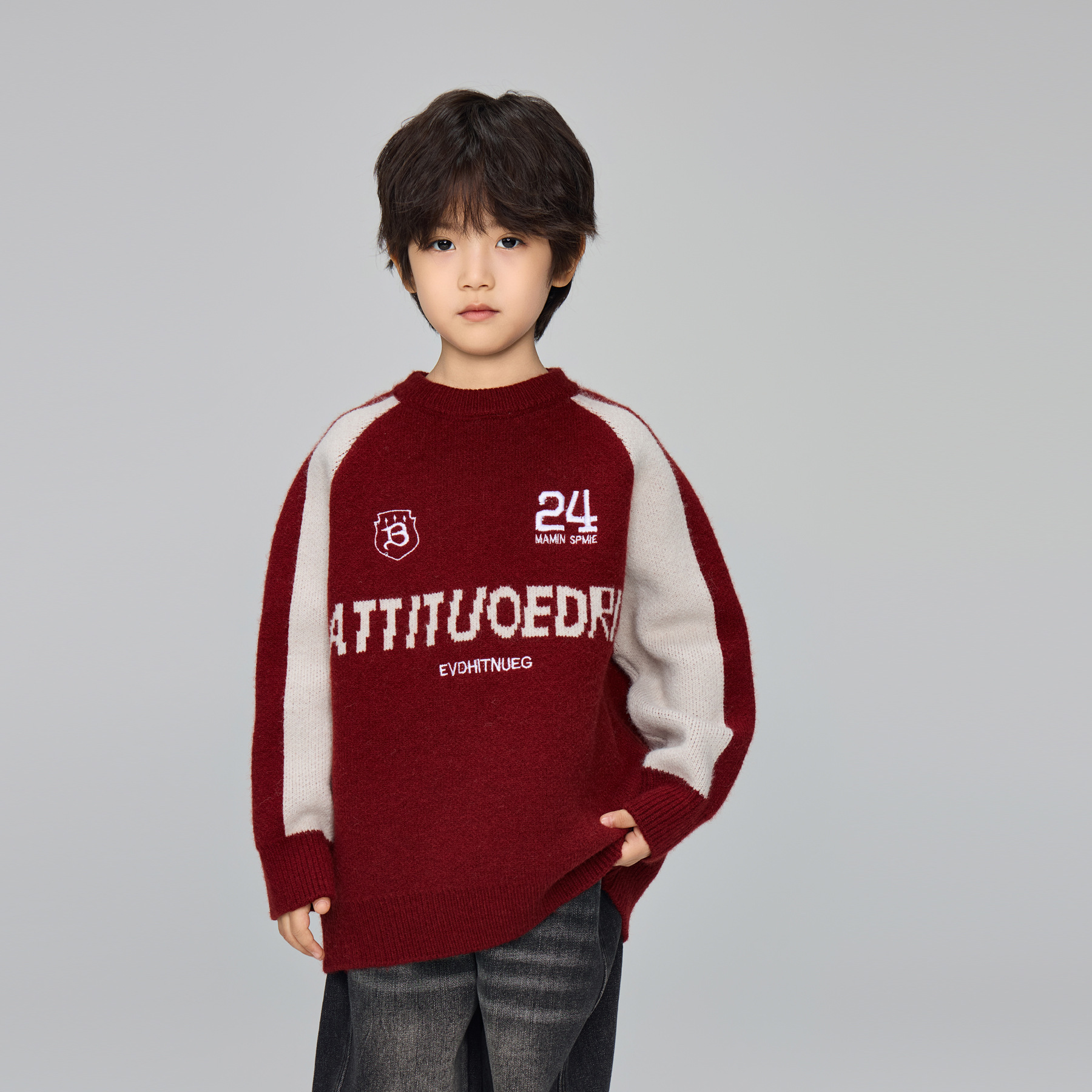 2024 겨울 새 어린이 서양식 편지 수 놓은 니트 스웨터 남성 중 · 대형 어린이 두꺼운 새해 붉은 스웨터스토어 가기