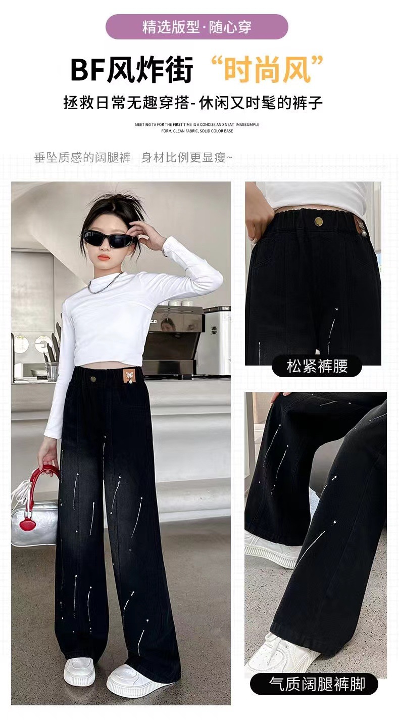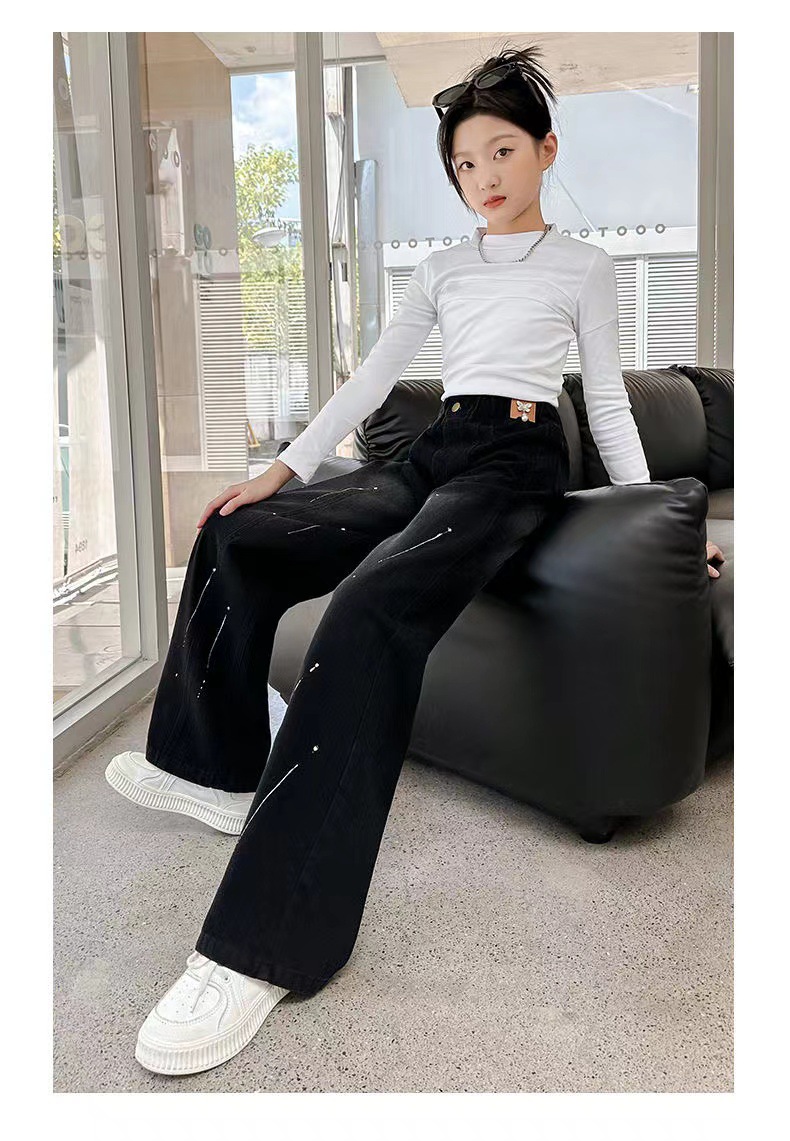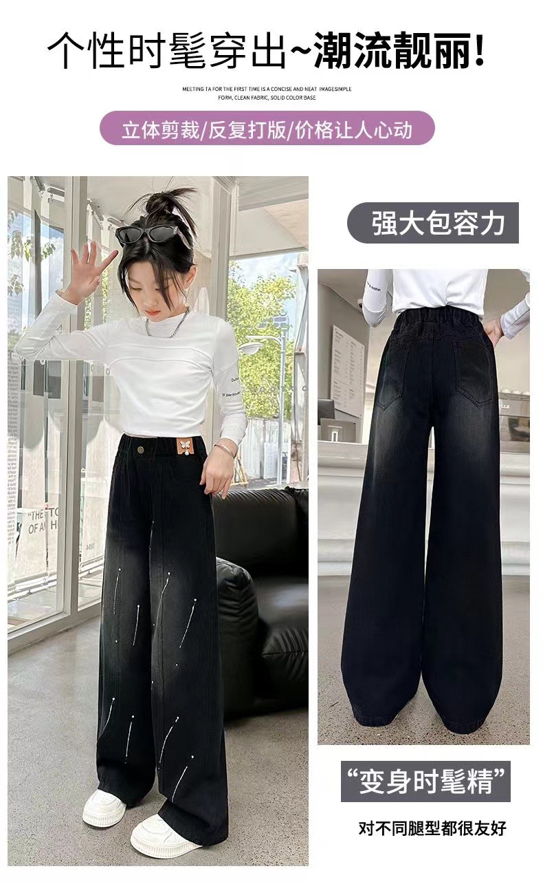 여아용 바지 청바지 2025 가을 겨울 신상 중대형 아동용 한국 스타일 플리스 안감 두꺼운 보온 스트레이트 와이드 팬츠스토어 가기