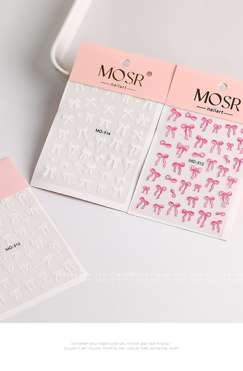 활 네일 스티커 그물 빨간색 3 차원 구호 흰색 리본 귀여운 소녀 파우더 네일 스티커 장식 도매스토어 가기