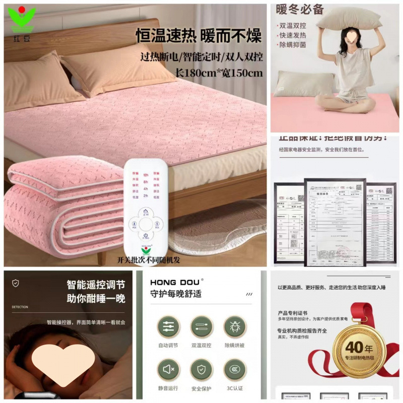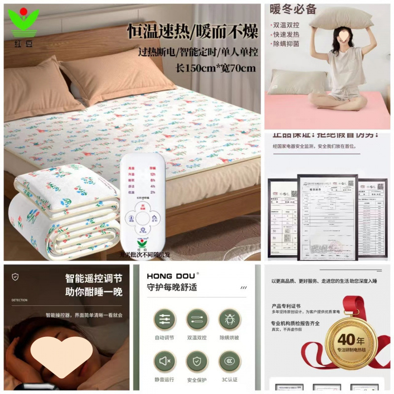 레드 빈 전기 담요 더블 더블 제어 지능형 타이밍 홈 증가 기숙사 진드기 제거 단일 매트리스 공식 플래그십 스토어스토어 가기