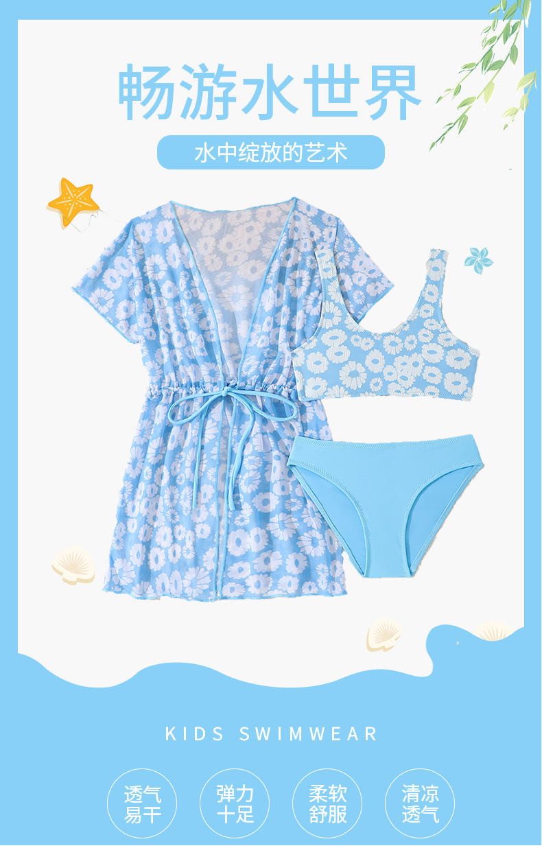2025 여자 3 피스 수영복 어린이 수영복 아기 소녀 여름 대외 무역 국경 어린이 수영복 중 큰 어린이 수영복스토어 가기