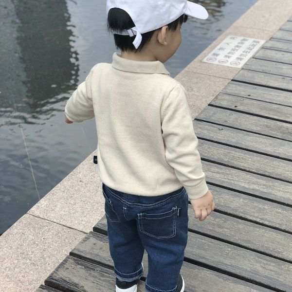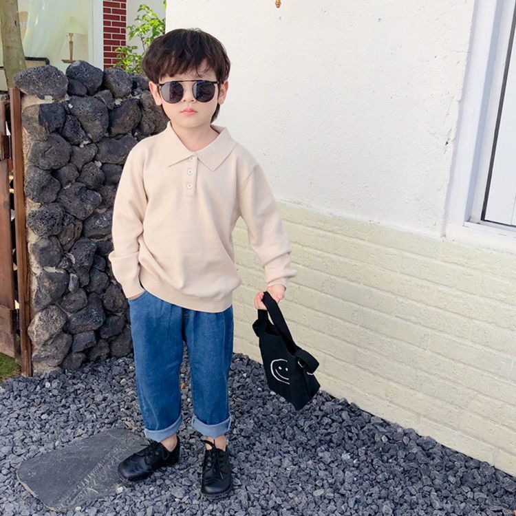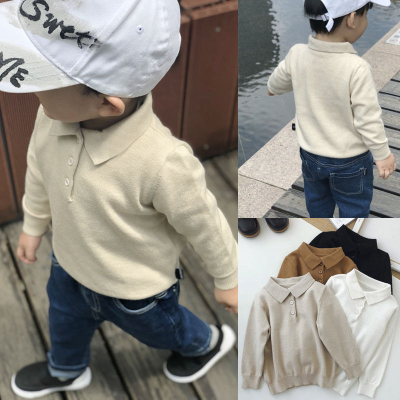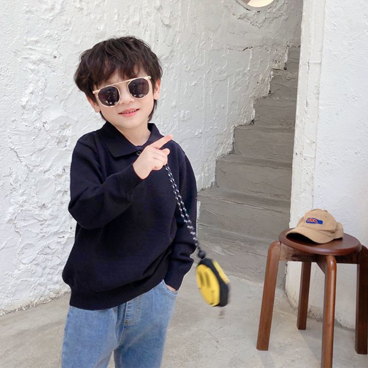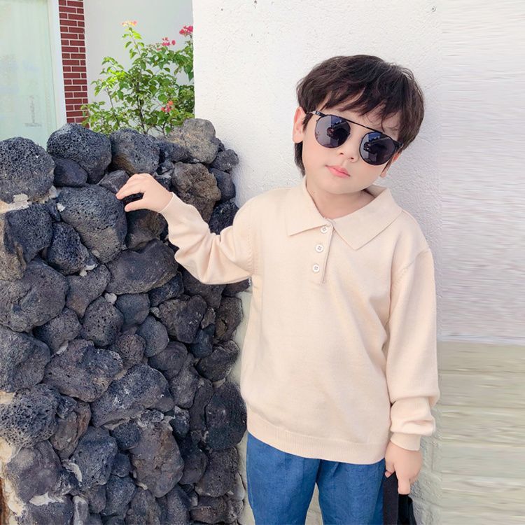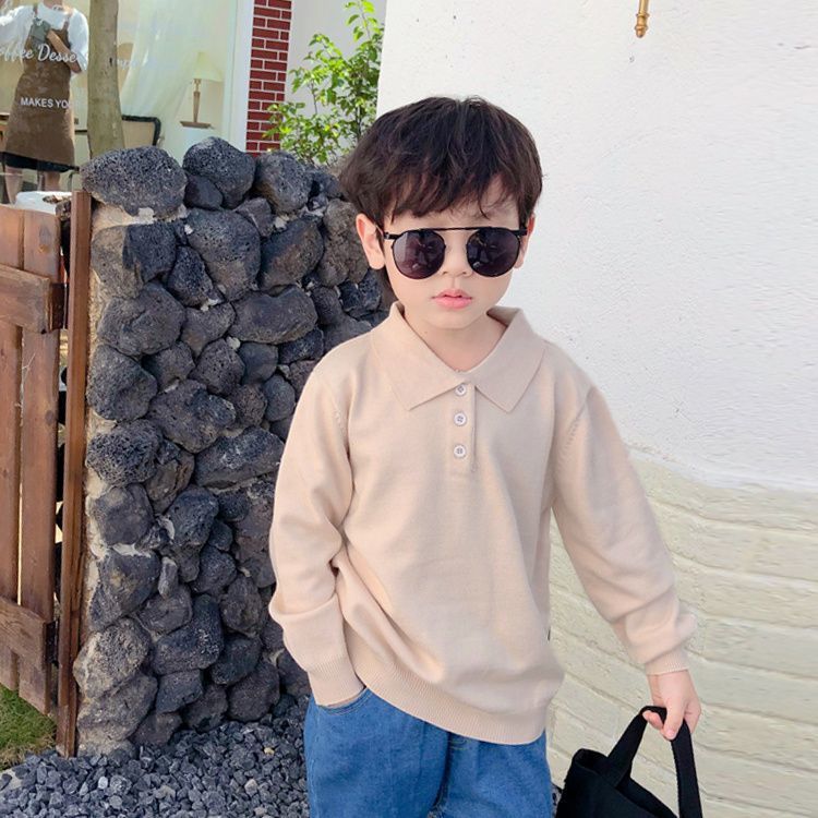 소년의 봄과 가을 스웨터 2024 새로운 어린이 편안한 느슨한 폴로 작은 엘 니트 스웨터 베이비 보이베이스 셔츠스토어 가기