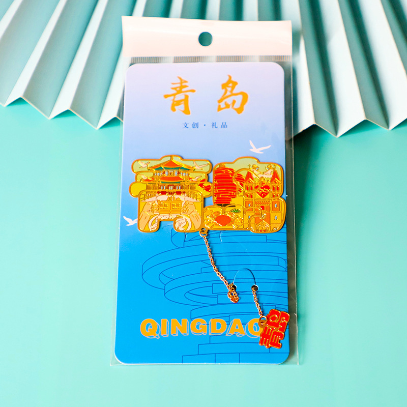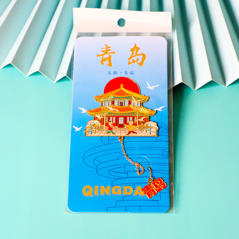 청도 북마크 중국 스타일 창조적 인 금속 청도 도시 북마크 조각 초등학교 교사 선물 기념품