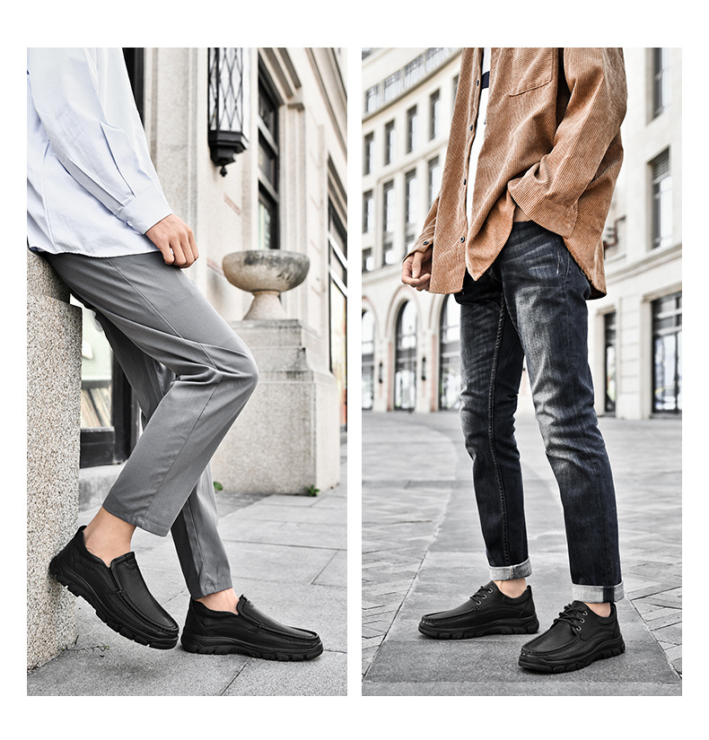 남성 봄 새로운 흑인 비즈니스 원피스 가죽 신발 두꺼운 밑창 남성 신발 플러스 사이즈 국경 간 야외 캐주얼 등산 신발스토어 가기